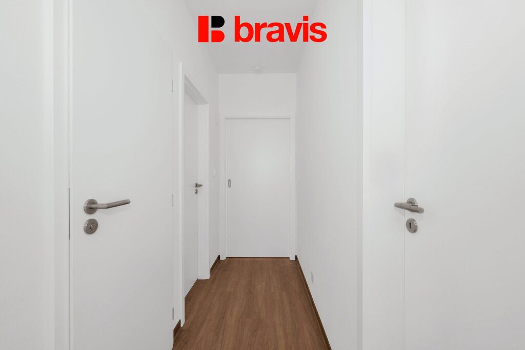 Byt se nachází v menším vila domě s pouhými čtyřmi jednotkami, což zaručuje klidné a přátelské prostředí. Lokalita na konci nové slepé ulice je obklopena zelení a nabízí tak ideální místo pro rodinný život, přičemž město Brno je snadno dostupné.