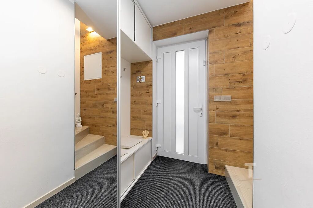 V přízemí se nachází vstupní chodba, světlý obývací pokoj s kuchyňským koutem, krbovými kamny a vstupem na terasu a samostatné WC s umyvadlem. V patře jsou tři pokoje a koupelna s WC. Součástí prodeje je kuchyňská linka se spotřebiči (lednice, myčka, el. trouba, sklokeramická deska, mikrovlnná trouba, dřez s baterií a spíž). Na chodbě jsou vestavěné skříně, které poskytují dostatek úložného prostoru. Orientace obytných místností je převážně na jih, dále na východ a západ, díky čemuž je dům prosluněný po celý den.