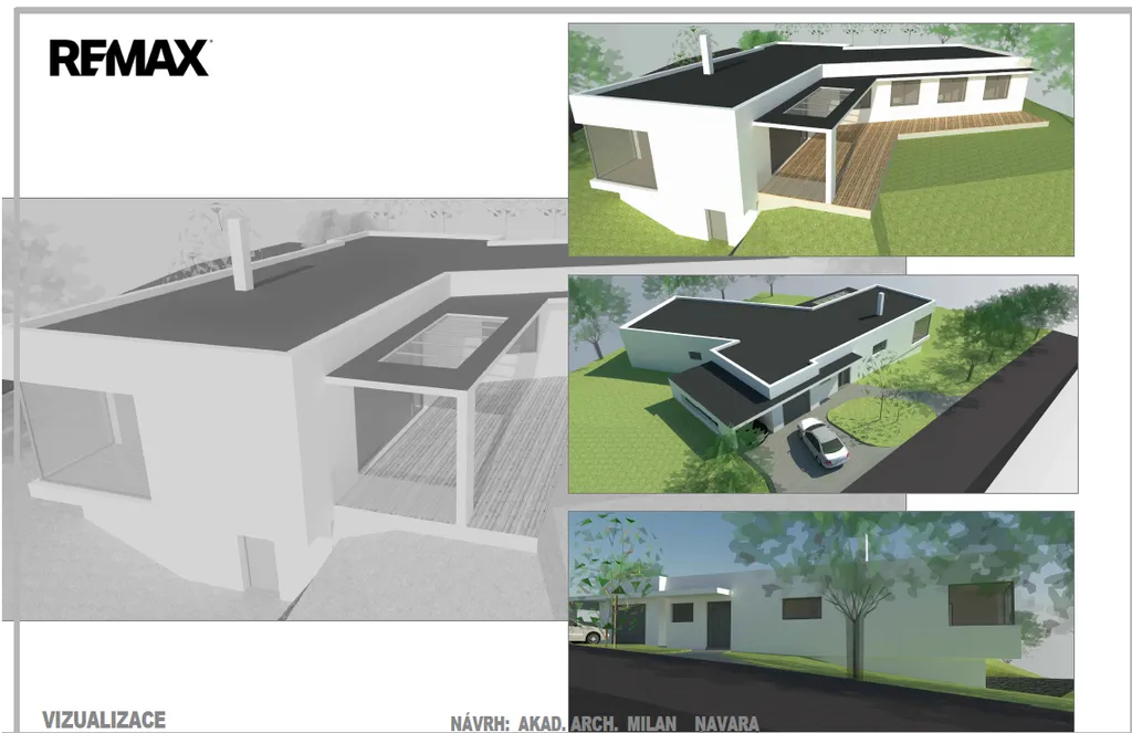 Součástí prodeje je již vypracovaný projekt luxusního rodinného domu s moderní architekturou, jehož stavební povolení je schváleno – můžete tedy okamžitě zahájit výstavbu.