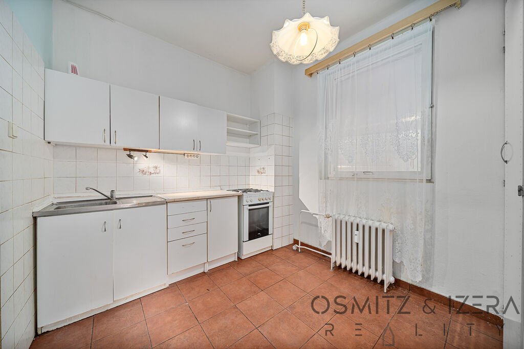 Koupelna je samostatná stejně tak jako sousední WC. Vybudovat zde druhé WC by nebyl problém. V kuchyni, v koupelně, na WC a chodba prošly částečnou rekonstrukcí. Ostatní části prostor jsou původní. Okna jsou také původní. V bytě je i plynová přípojka.