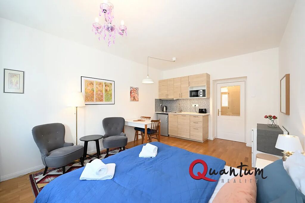 Nabízíme k pronájmu krásný, designově zařízený byt 1+kk/30m2 ve vyhledávané lokalitě pražských Vinohrad, v klidné a elegantní Záhřebské ulici. Tento slunný a útulný apartmán se nachází v 5. patře pečlivě zrekonstruovaného secesního domu s výtahem a reprezentativní fasádou.