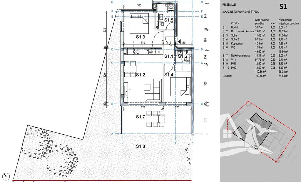 Nabízíme ke koupi prostorný třípokojový apartmán o výměře 74,68 m², který se nachází v přízemí moderní novostavby v oblíbené Novalji. Nemovitost je ideální pro ty, kdo hledají komfortní bydlení v klidné lokalitě s blízkostí moře a centra města.