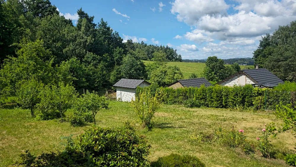 Pozemek je částečně rovinatý, udržovaný, s ovocnými stromy a oplocený.