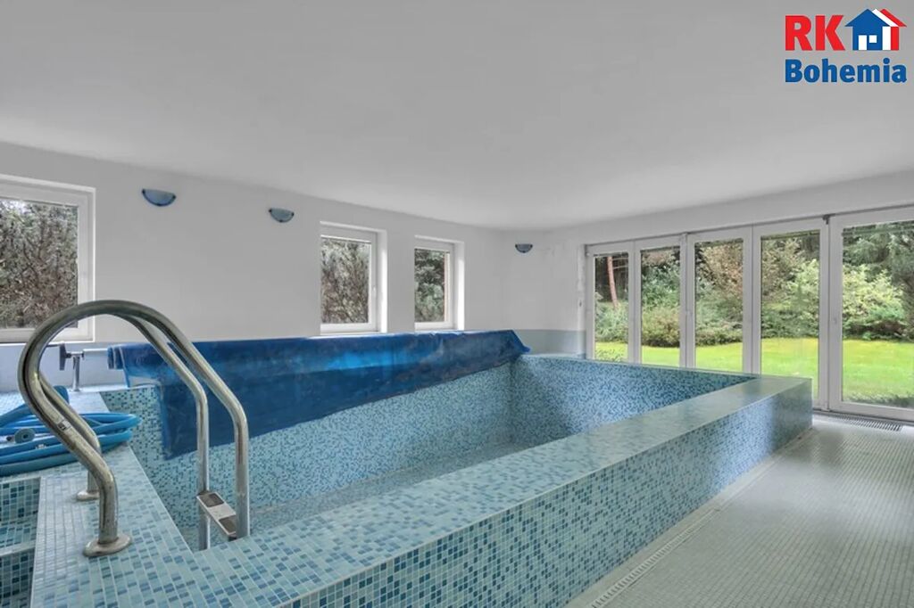 Prodej rodinný dům 9+2, na pozemku o CP 4183 m2 se zahradou, bazénem, dvougaráží, Hrdlořezy u Mladé Boleslavi Prodej atypického rodinného domu na pozemku o CP 4183 m2, Hrdlořezy u Mladé Boleslavi. Objekt kolaudovaný v r. 2005 s velkou citlivě řešenou zahradou se vzrostlými stromy na okraji obce nabízí komfort bydlení nedaleko města a přitom poskytuje obyvatelům příjemné soukromí na kraji lesa a přírody. Dům o dispozici 9+2 s dvougaráží, vnitřním bazénem s automatickou regulací PH, solární ohřev vody, vlastní čistička odpadních vod, studna na pozemku, les, potok, vinný sklípek 8 x 3,5m. Vnitřní dispozice: Přízemí - vstupní hala, chodba, prostorná obytná místnost s francouzskými okny na zahradu, jídelna, kuchyně, koupelna se sprchovým koutem, WC, z haly vstup do mezichodby, z té vstupy do dvougaráže, technické místnosti, vnitřního bazénu, schodiště do patra. Patro - obytné podkroví - chodba se vstupy do dvou velkoryse prostorově řešených ložnic, jednotlivých dalších 4 ložnic (u 4 vstupy na balkon), pracovna, velká světlá koupelna a místnost s přípravou na druhou kuchyni. Mladá Boleslav 5 minut jízdy, výjezd na dálnici D10 Praha - Mladá Boleslav - Liberec rovněž. Financování hypotékou Vám pomůžu zajistit. Více info u makléřky. Doporučuji prohlídku