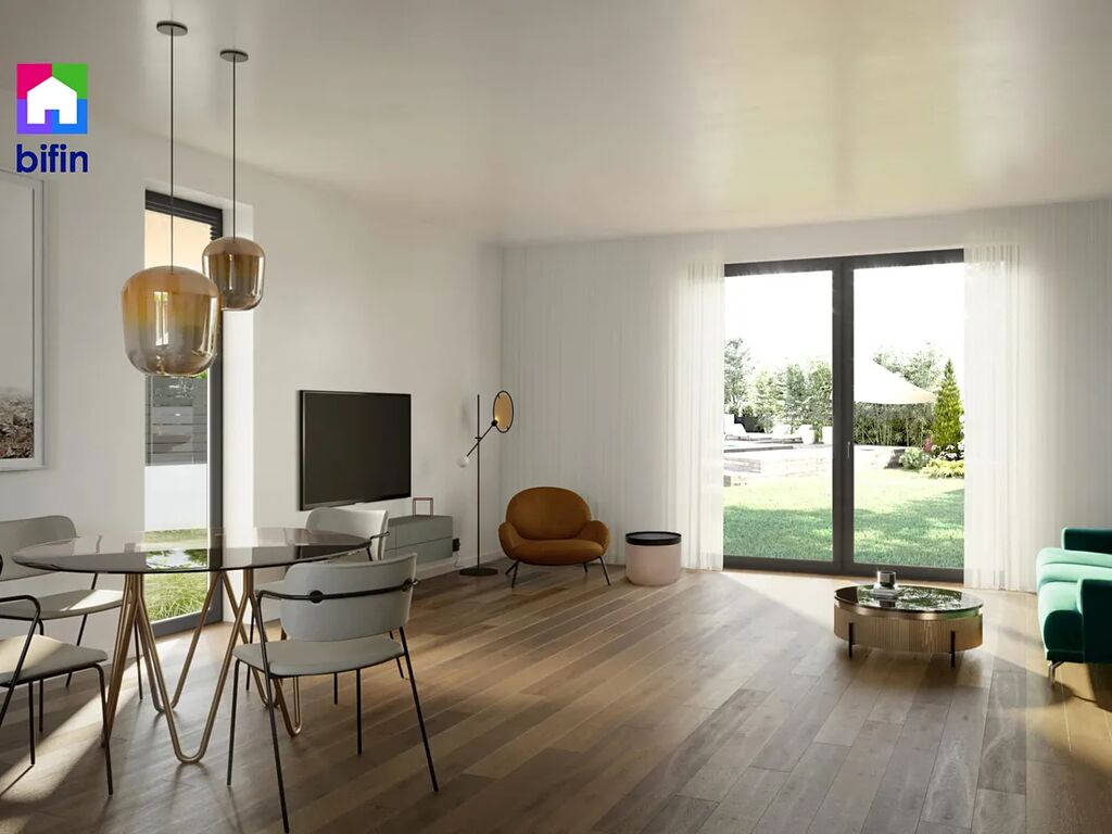 Dispozice sestává ze zádveří, technické místnosti, samostatného WC, chodby, koupelny s vanou, sprchovým koutem a s WC, dětským pokojem, dvěma ložnicemi, a obývacím pokojem s kuchyňským koutem, ze kterého je přístup na terasu orientovanou do zahrady.