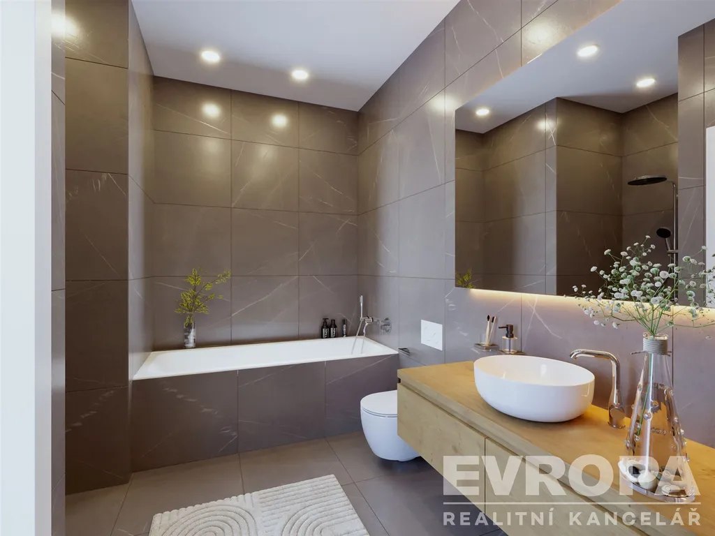 Provedení bytu je ve vysokém standardu, 3 vrstvé podlahy z pravého dubového dřeva v obytných místnostech, koupelna s velkoformátovými keramickými obklady italské značky Del Conca. Součástí vybavení koupelny je také žebříkový radiátor a zařizovací předměty značky Vitra a Grohe.