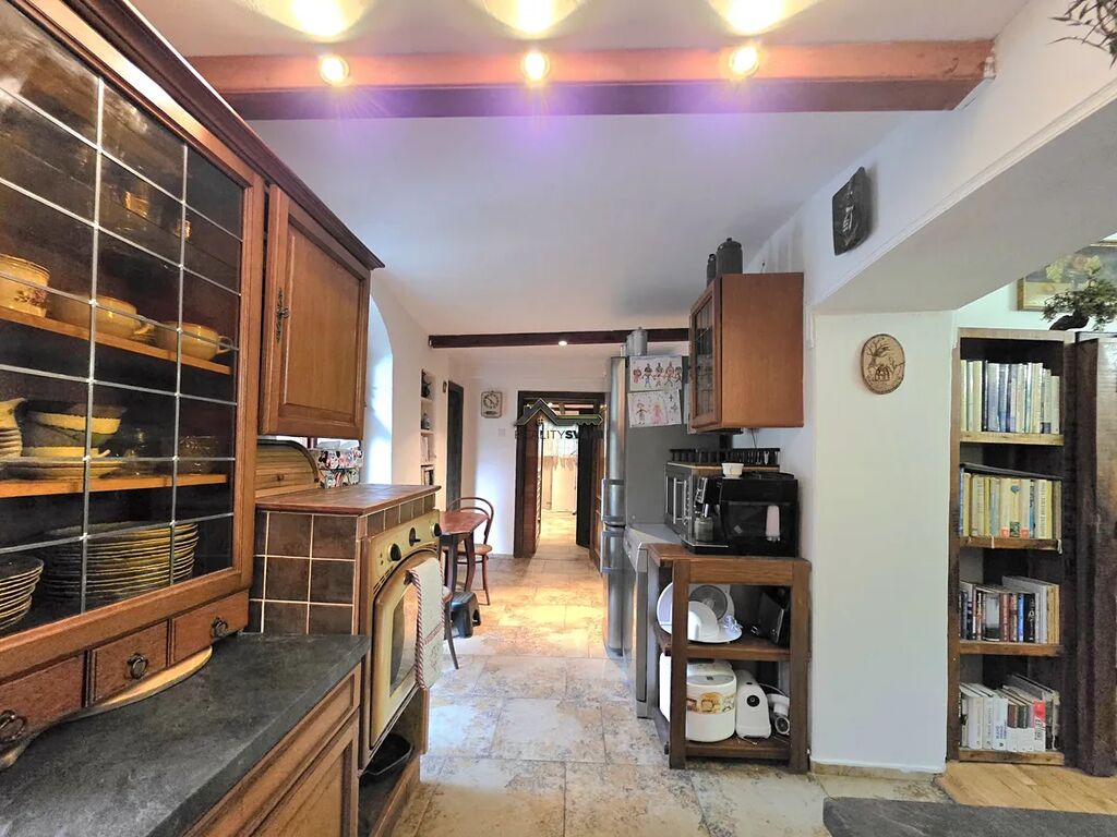 Kombinovaný kotel (plyn/dřevo), solární panely pro ohřev vody, dálkový vodovod + možnost studny, kanalizace, elektřina 230/400 V.