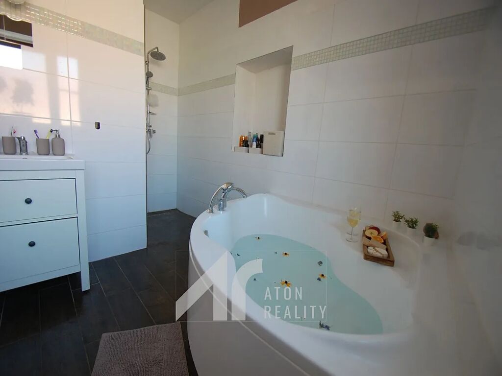 Koupelna je vybavena jak rohovou vanou, tak i sprchovým koutem. V domě se nachází také velká technická místnost. Ložnice je rozdělená na spací zónu a navazující pracovnu, přičemž i z ní je přímý vstup na terasu. Dále je zde jeden obytný pokoj, který může sloužit jako dětský , nebo pokoj pro hosty .