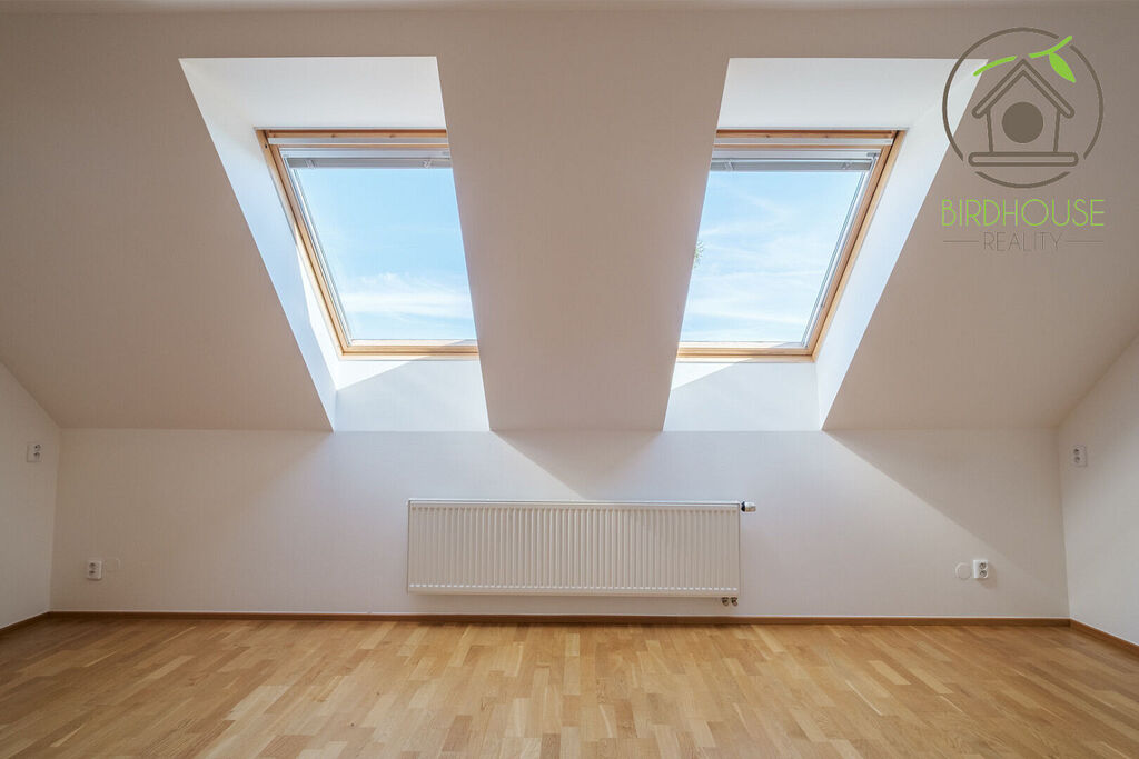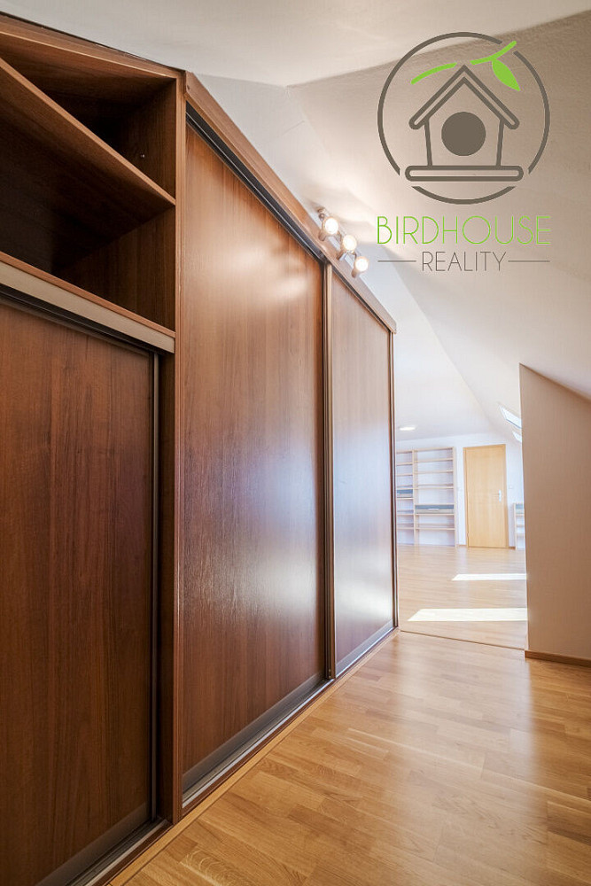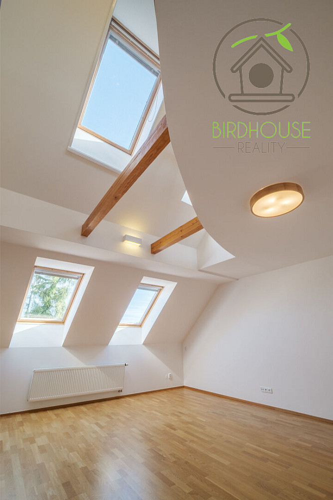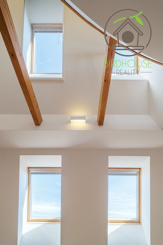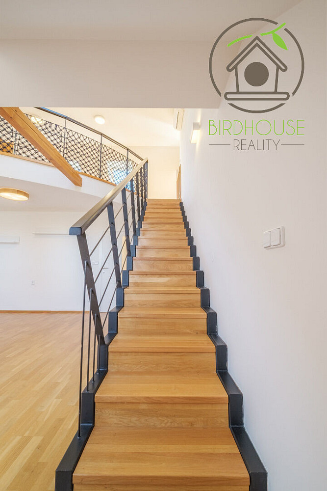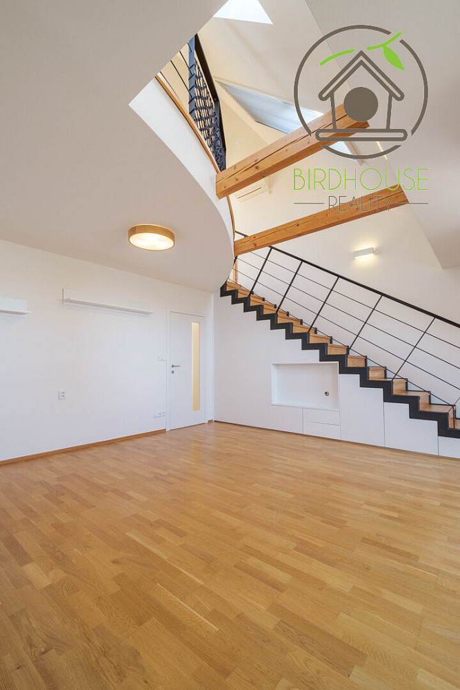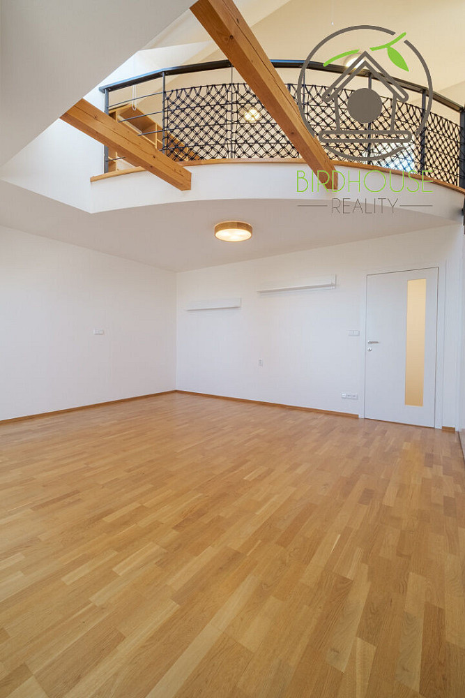 Patro o velikosti 31,76 m² pak nabízí soukromí v podobě galerie, kterou lze využít jako ložnici se šatnou (25,78 m²), a velkou koupelnu s vanou i sprchou (5,98 m²). Byt je vybaven třemi klimatizačními jednotkami, které jsou umístěny v obývacím pokoji, pokoji a kuchyni, což zajišťuje maximální komfort i v horkých letních dnech.