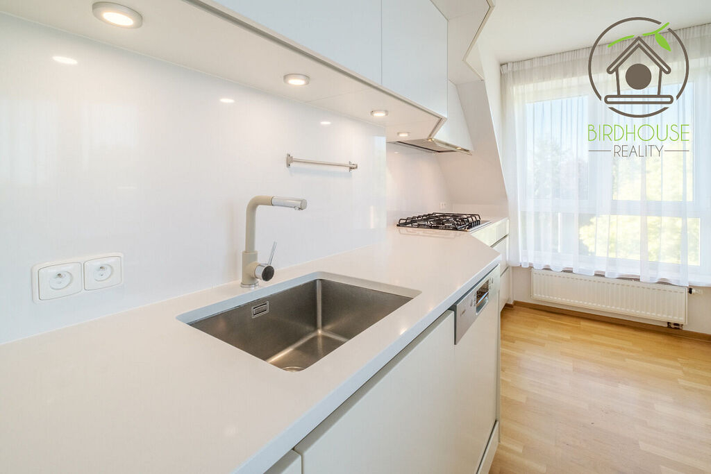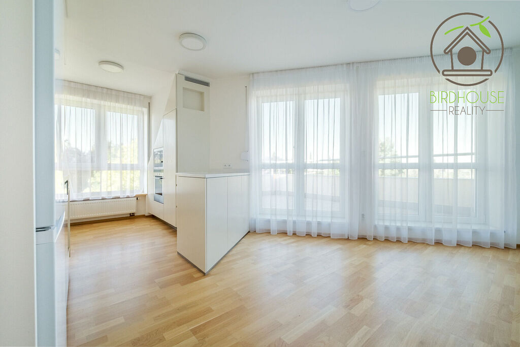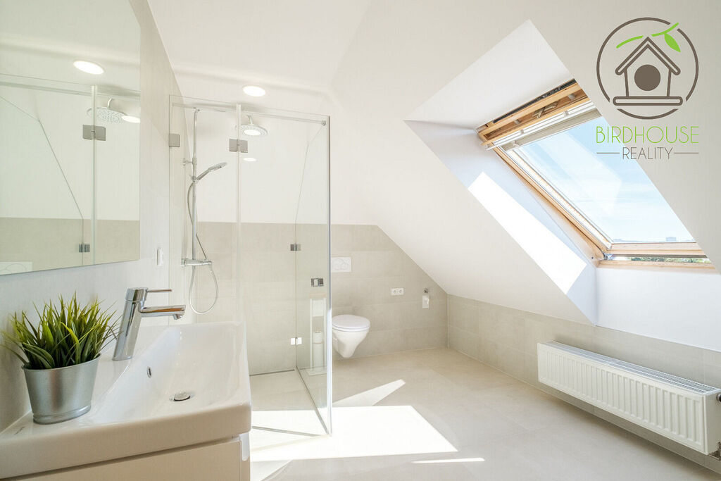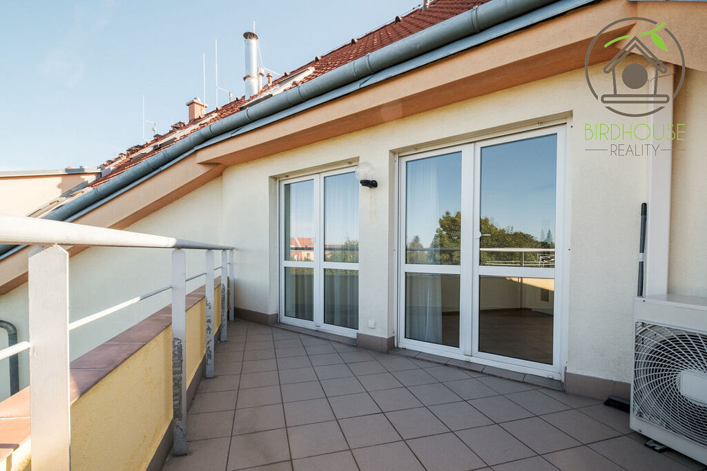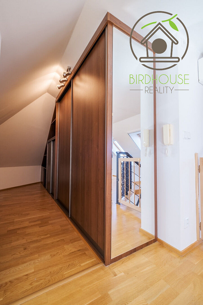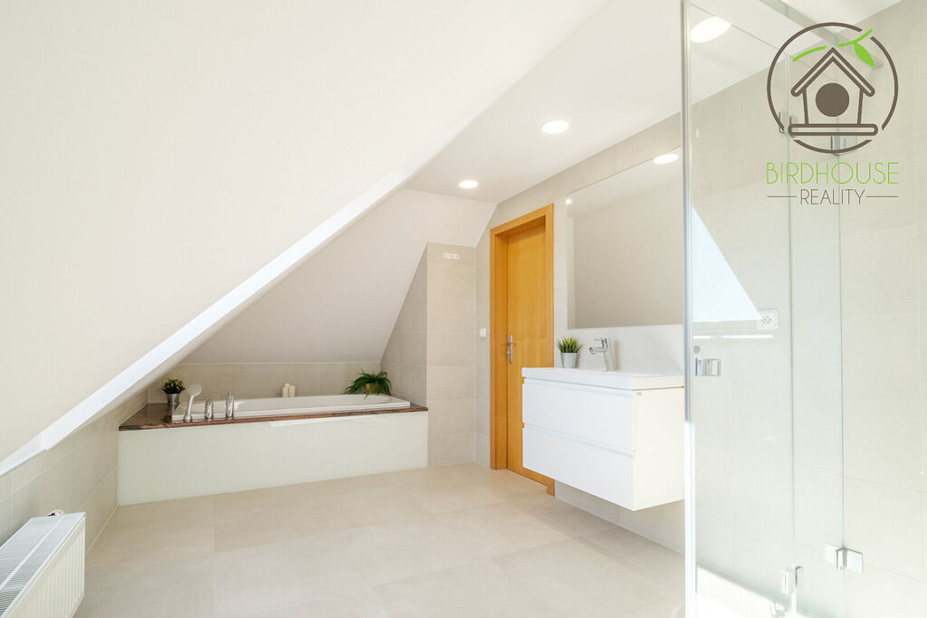 Patro o velikosti 31,76 m² pak nabízí soukromí v podobě galerie, kterou lze využít jako ložnici se šatnou (25,78 m²), a velkou koupelnu s vanou i sprchou (5,98 m²). Byt je vybaven třemi klimatizačními jednotkami, které jsou umístěny v obývacím pokoji, pokoji a kuchyni, což zajišťuje maximální komfort i v horkých letních dnech.