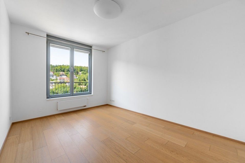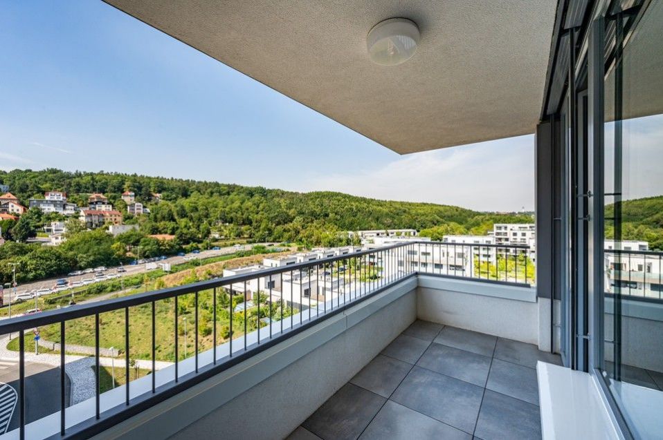 REZERVACEPronájem slunného, moderního, jihozápadně orientovaného, kompletně vybaveného, klimatizovaného bytu 4+kk (109m2) s krásnými protilehlými výhledy do okolní zeleně, se dvěma balkony (9,8m2) a parkovacím místem v ceně nájmu v 8.podlaží prestižní nízkoenergetické (A) bytové rezidenci Waltrovka s nízkými provozními náklady, umístěné na Praze 5, v pěší dostupnosti stanice metra Jinonice (linka B) a oblíbeného parku Cibulka.