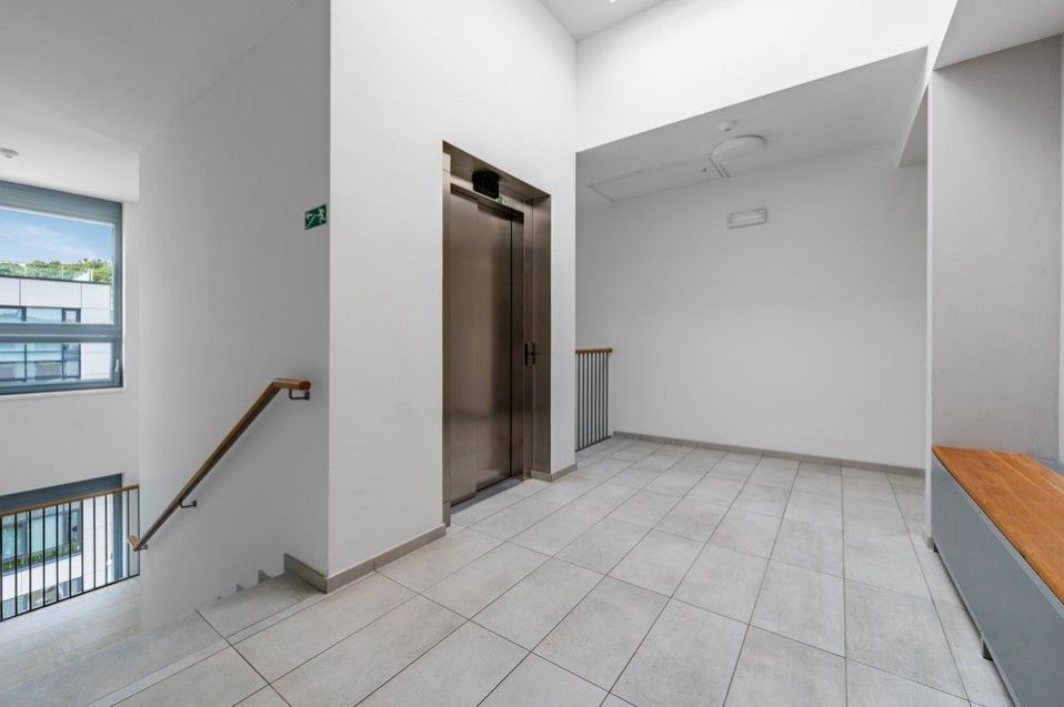 Nadstandartní vybavení zahrnuje kuchyňskou linku v bílém designu (myčka, lednice, mrazák, trouba, mikrovlnná trouba, indukční deska, podlahy z masivu, jídelní stůl, 6 čalouněných židlí, kožená sedací souprava, konferenční stolek, velkoplošná televize a skříňka pod televizi, vybavená ložnice - manželská postel, prostorná šatní skříń s posuvnými dveřmi, stropní osvětlení v celém bytě, pračka a sušička, dostatek úložných prostor - šatní skříně v chodbě.