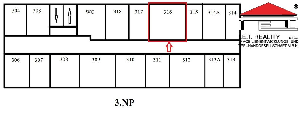 Pronájem kancelářeč. 316, 39,1 m², situované ve 3.NP komerční budovy na ul. Kroftova v Brně. Jedná se o místnost s vlastním samostatným vstupem a přívodem vody s umývadlem. Jedna ze čtyř stěn je vybavena skříňovým atchivem. V rámci podlaží je k dispozici sdílené sociální zařízení a kuchyňka. Kancelář má vlastní zabezpečovací okruh s přístupem 24/7 a k pronájmu je volná ihned. Možné je využívat také omezenou kapacitu parkovacích míst.