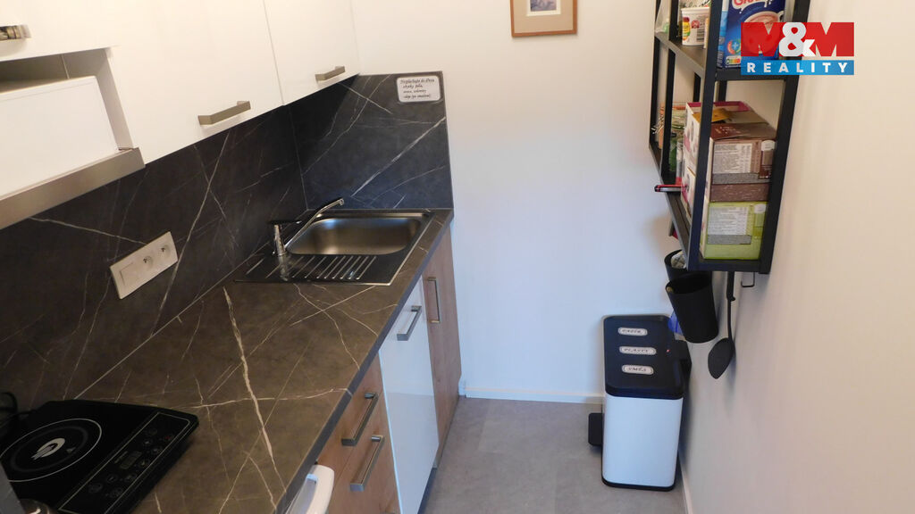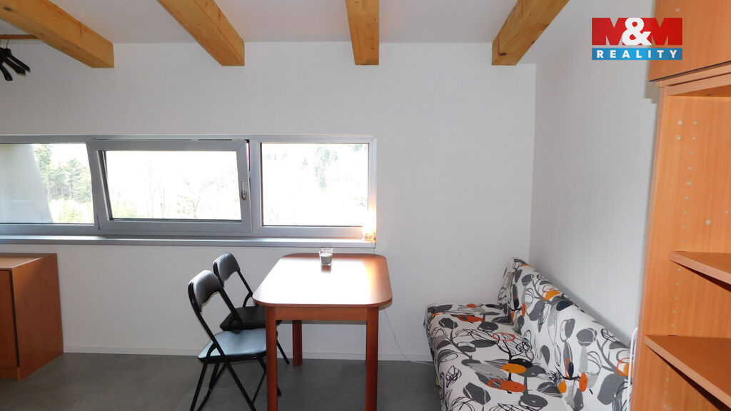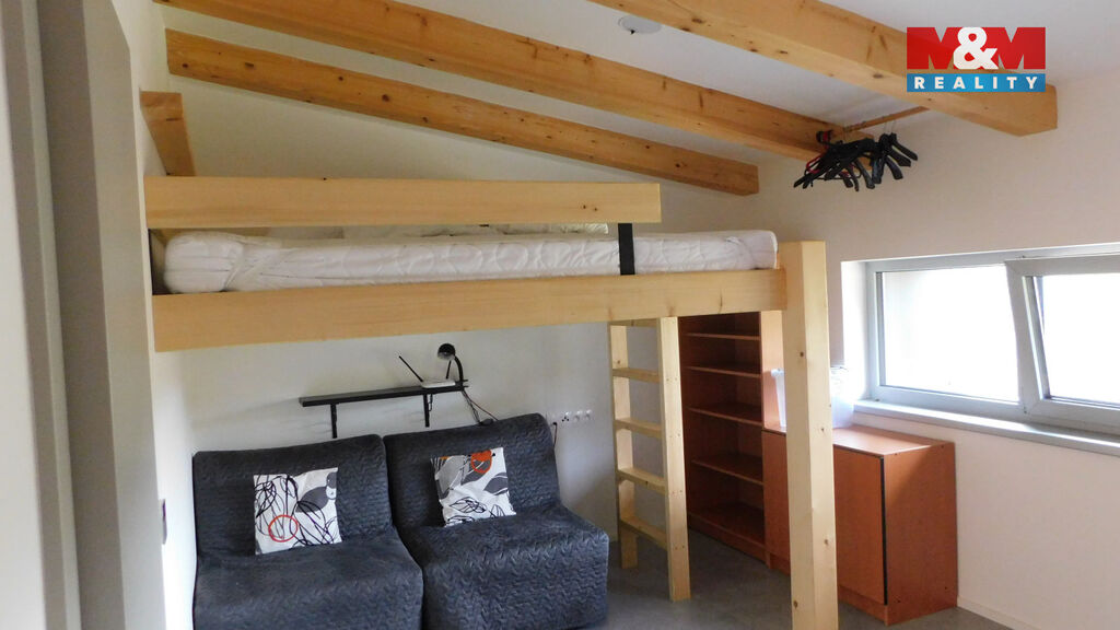 Jedná se o částečně zařízený, moderní prostor o velikosti 25 m² ve stylovém bytovém domě. Disponuje vstupní chodbičkou, koupelnou se sprchovým koutem a toaletou, vybaveným kuchyňským koutem s myčkou, ledničkou a indukčním vařičem, pokojem s patrovou nástavbou pro spaní, jídelní a klidovou částí. Vybavení je o domluvě, k dispozici společná prádelna. Nájemné je včetně služeb pro 1 osobu, elektřina hrazena zálohově. Volný od 10/2025, jistina, provize RK. Více informací u makléře.