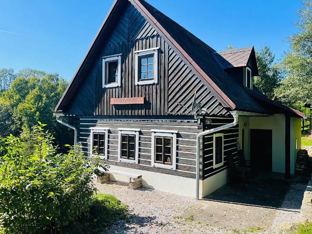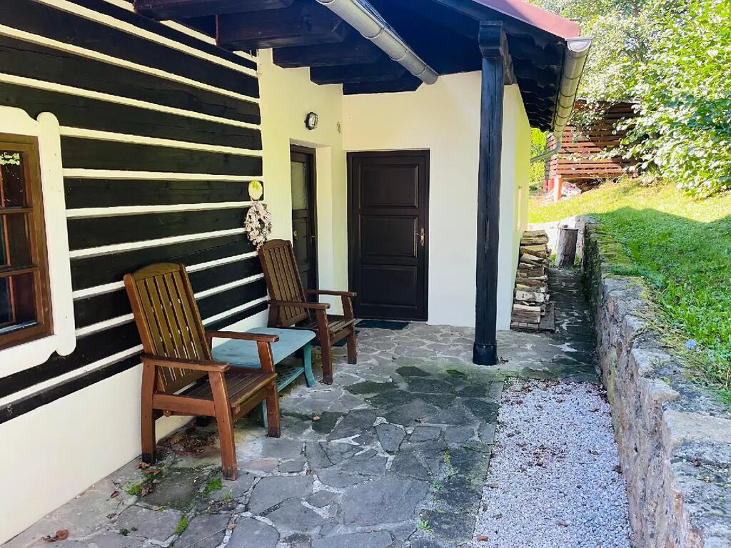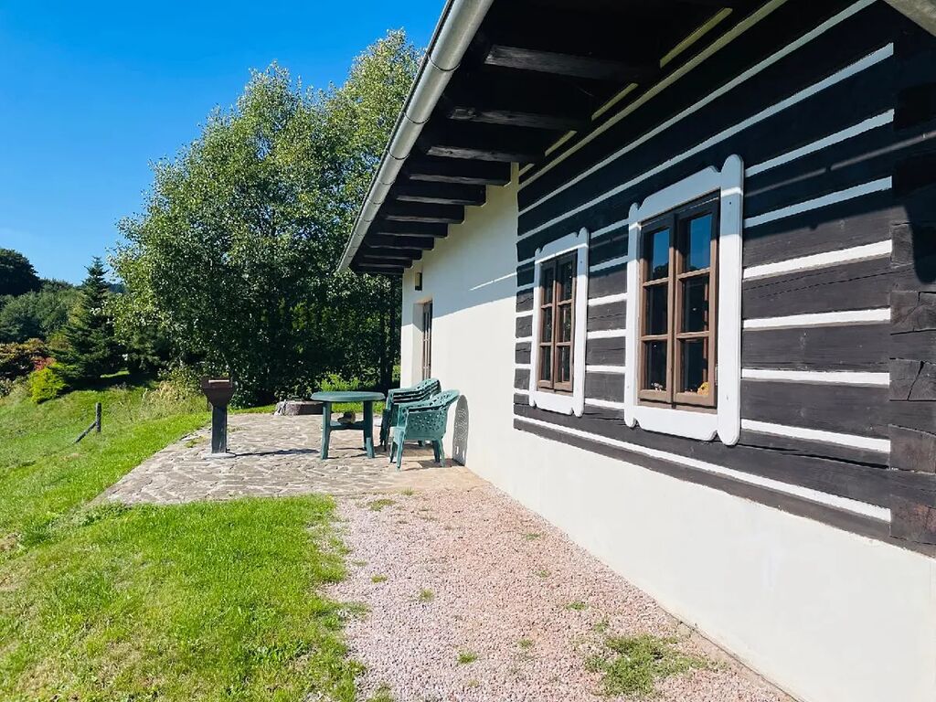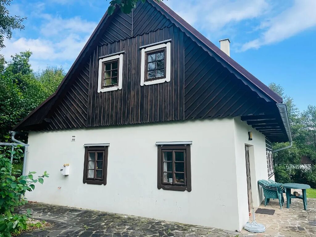 Moderní rodinný dům ve stylu roubenky 4+kk byl postaven v roce 2000, je vhodný k trvalému bydlení, ale také pro čistě rekreační účel. Dispozice: vstup, toaleta, technická místnost, prostorný obývací pokoj s přímým vstupem na zahradu, kompletně vybavená kuchyně; v prvním patře jsou tři ložnice a koupelna se sprchovým koutem, dvojitými umyvadly a wc. K domu náleží zahrada o výměře cca 1.600 m² a dlážděné nádvoří, vše ve výborném technickém stavu. Prodej je realizován vč. kompletního vybavení. IS: 230/400, voda obecní, odpad kanalizace, topení elektrické konvektory a v obývacím pokoji kachlová kamna. Umístění domu je na slunném svahu v blízkosti lesa. Koupě možná též za účelem investice, dům se současně pravidelně pronajímá. Krásné prostředí Podkrkonoší.