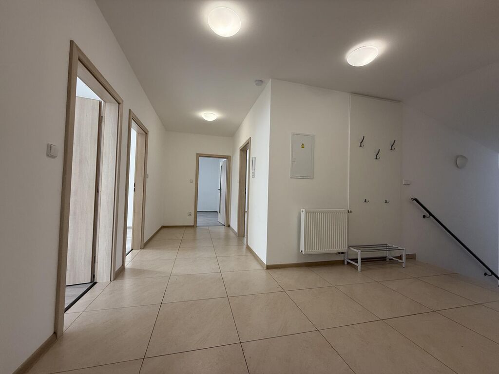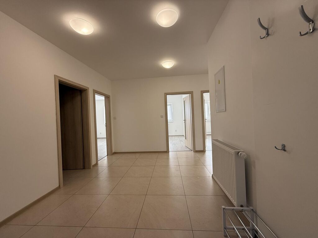 Byt disponuje prostornou chodbou, ze které se vstupuje do 4 pokojů. Šatní místnost s regály na odkládání věcí, koupelna se sprchovým koutem a separé toaleta.