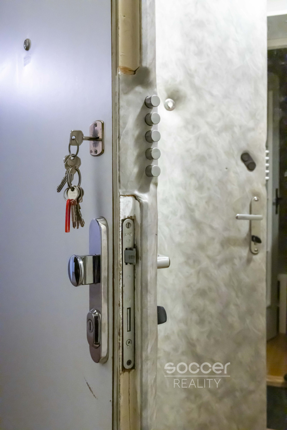 Přímo na patře vedle bytu je praktický uzamykatelný sklad 1,2 m2. pro uskladnění např. kola, lyží apod.
