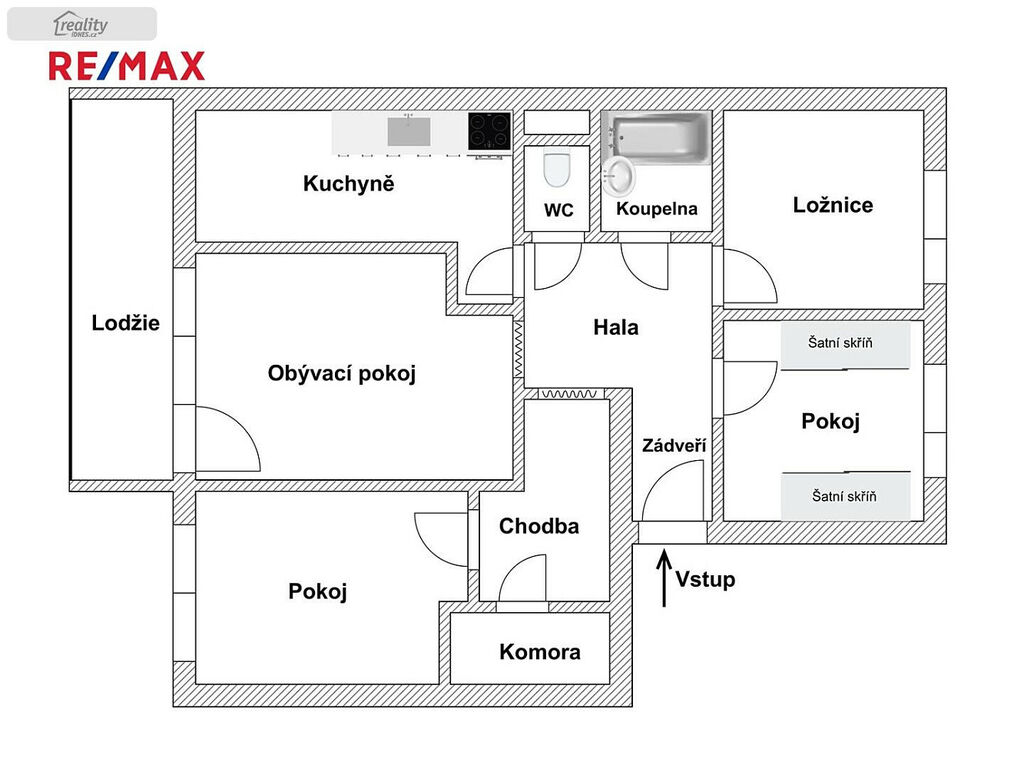 Celková plocha včetně sklepa a lodžie je 92,8 m².