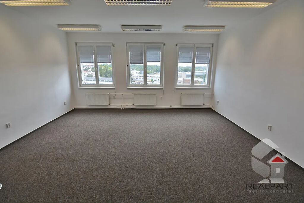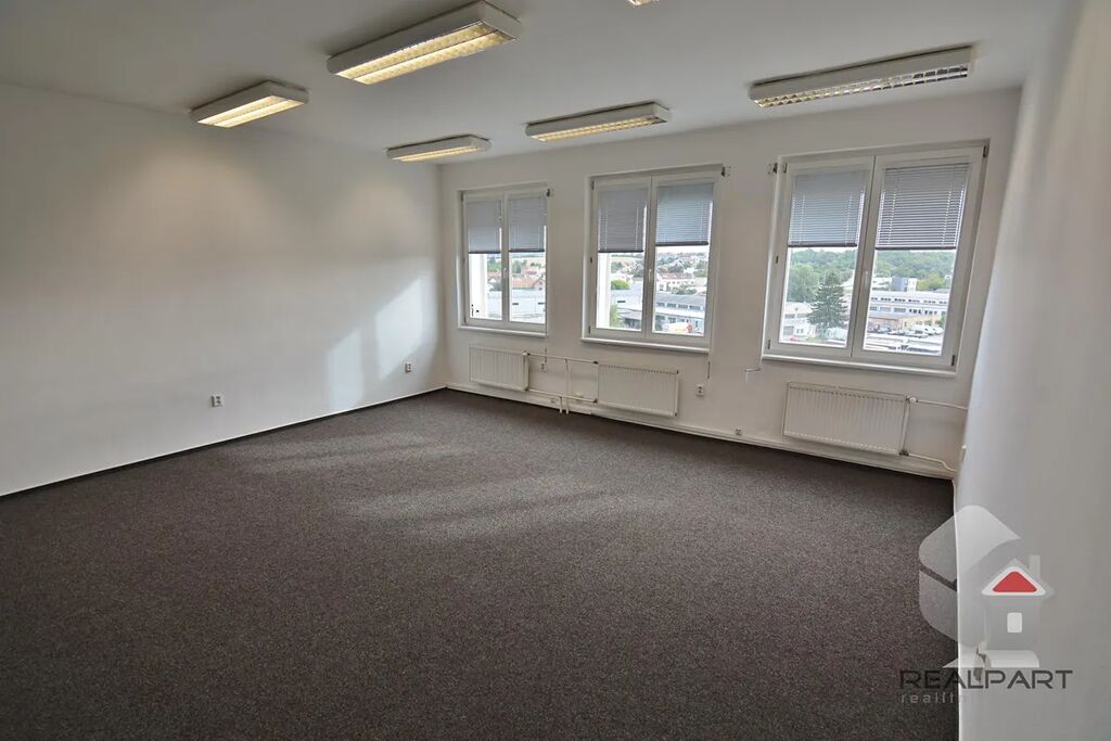 Nabízíme k pronájmu kancelář (1 místnost) o výměře 33 m2, obec Brno - Černovice, ul. U Svitavy. Kancelář se nachází v 6.NP / 6.NP administrativní budovy s výtahem. V kanceláři je položený nový zátěžový koberec. Areál je hlídán ostrahou 24h denně, k dispozici kantýna, recepce, služby ostatních firem v areálu. Možnost zapojení internetu a telefonu - není zahrnuto ve službách. Umístění sídla společnosti je možné. Na patře se nachází společná kuchyňka, k dispozici společná sprcha. Nájemné činí 4.933 Kč + služby 4.802 Kč - ceny jsou uvedené bez DPH. Kauce 7.400 Kč. V ceně je zahrnuto 1 parkovací stání u areálu, možnost pronájmu i více aut. Ihned k dispozici, pro více informací nás kontaktujte.