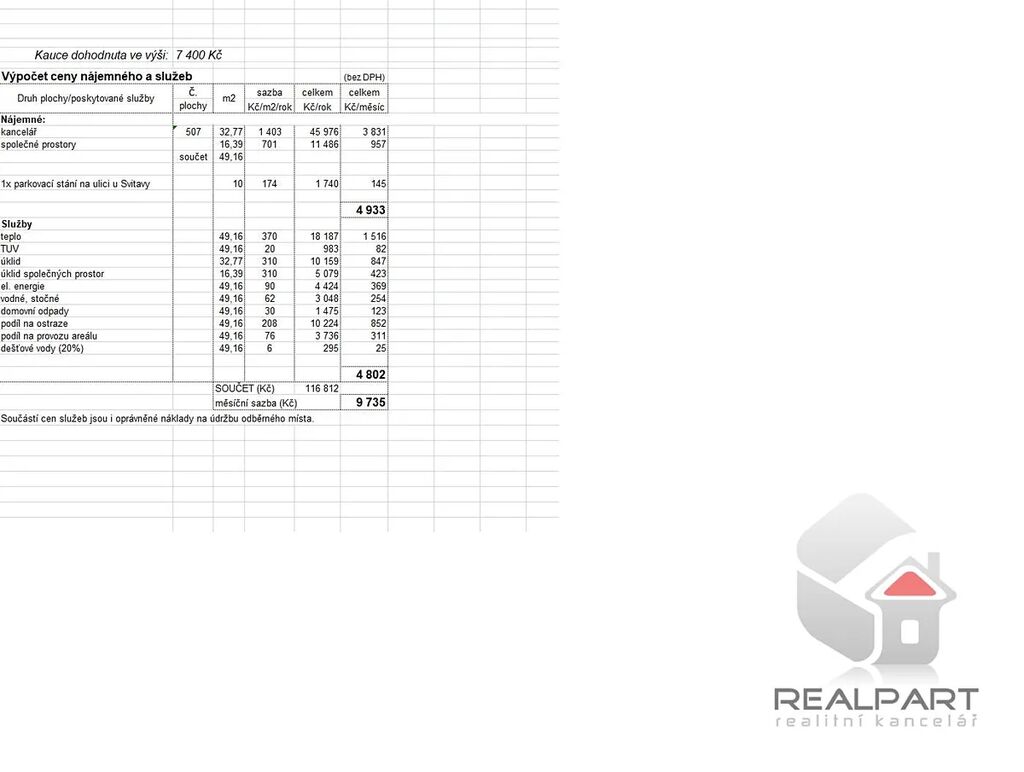 + záloha na služby 4.209 Kč , uvedené ceny jsou bez DPH