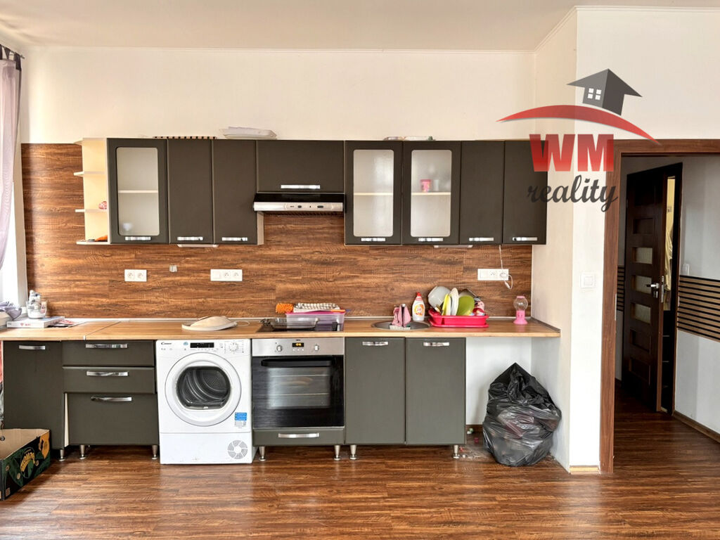 Byt je ve velmi pěkném stavu a sestává z předsíně, koupelny se sprchovým koutem a WC, dále vcházíme do velké kuchyně, kterou lze spojit s obývacím prostorem a poslední místností je samostatný pokoj se vstupem z předsíně.