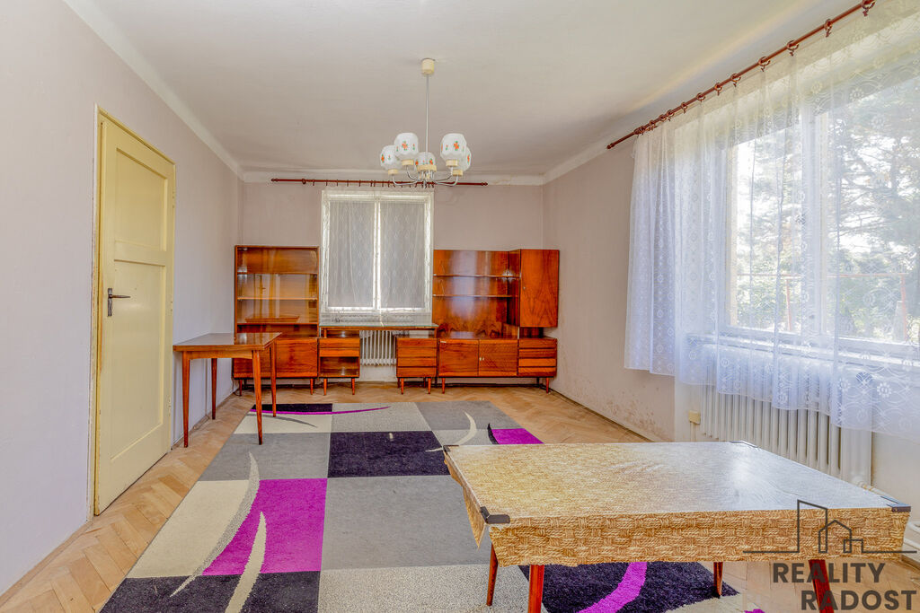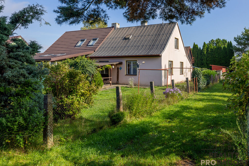 V přízemí tohoto domu se nachází dvě obytné místnosti, kuchyně a sociální zařízení. Třetí pokoj je umístěn v podkroví, což zajišťuje dostatek soukromí. Na pozemku se nachází podsklepená kůlna, která by se po úpravách dala využit k parkování auta. Současně lze parkovat na ulici.