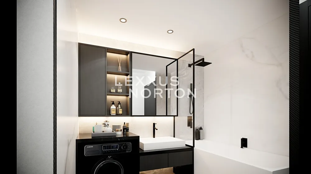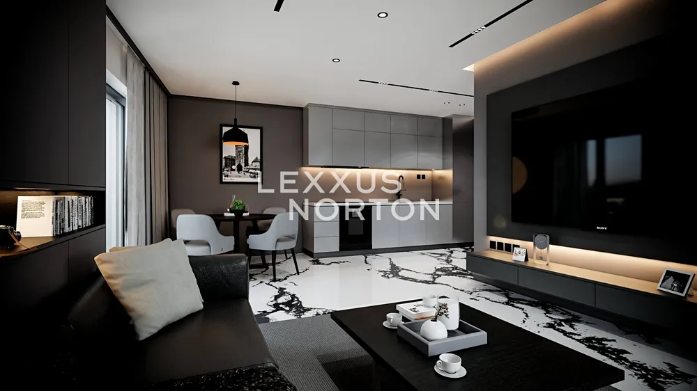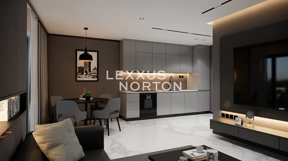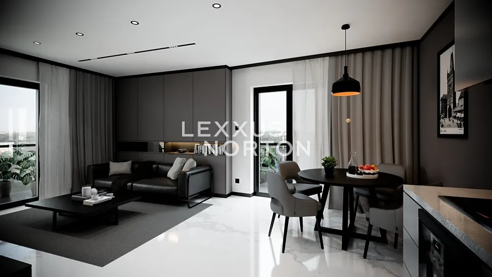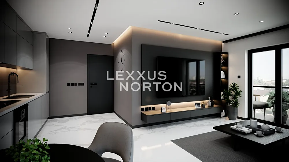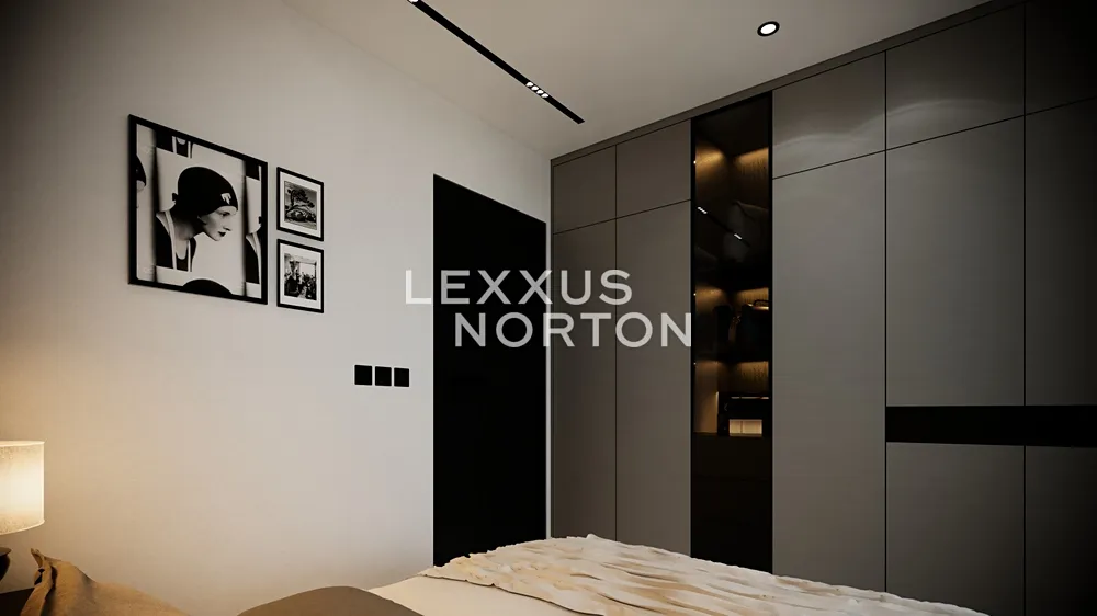 Obývací pokoj s kuchyňským koutem nabízí přímý vstup na velký balkon, který rozšiřuje obytný prostor o venkovní posezení. Hlavní ložnice i druhý pokoj poskytují dostatek prostoru pro šatní skříně a úložné prvky. Koupelna s vanou a samostatné WC jsou navrženy v elegantním designu s důrazem na funkčnost.