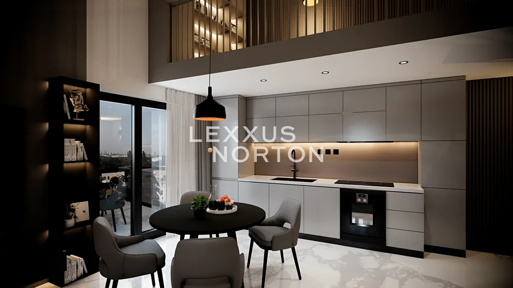 Prostorný obývací pokoj propojený s kuchyňským koutem poskytuje přímý vstup na balkon i schodiště k horní galerii. V dolní části se nachází dvě ložnice, koupelna s vanou a samostatné WC. Horní část doplňuje galerie s dalším pokojem a pracovnou, která se snadno přizpůsobí vašim potřebám.