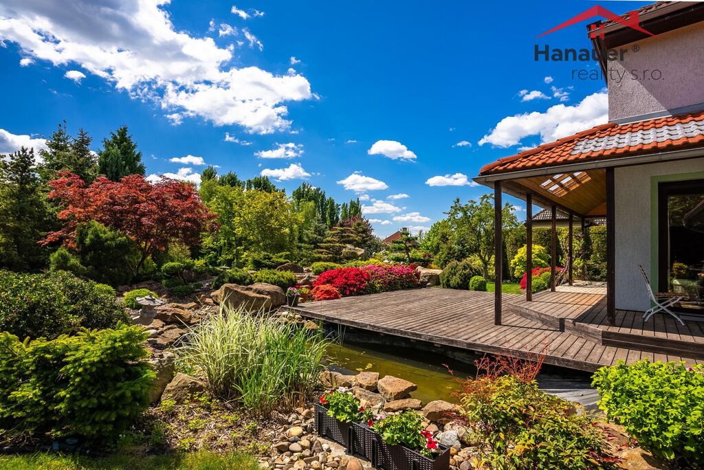 Byl jsem osloven majiteli tohoto úžasného domu, abych jim pomohl s jeho prodejem. To jsem ho ale ještě neviděl, jen mi kamarád řekl, že budu překvapený. A také jsem byl. První, co mě napadlo, když jsem ho viděl, bylo: Americký styl. Terasy kolem domu, velká okna, prostorný interiér se schodištěm, z části otevřený prostor z 1. do 2. podlaží, různé linie střechy. Můj pocit umocňovala také poloha rodinného domu v klidné, lukrativní a vyhledávané části těsně na okraji města Ústí nad Labem, v obci Chuderov . Takové bydlení mimo ruch města, ale v podstatě ve městě, pouhých 10 minut autobusem či autem od centra Jak se říká: co by dup. Zastavěná plocha domu je 649 m2, přičemž užitná plocha je 310 m2. Celková plocha je však 1884 m2. A co tvoří rozdíl mezi celkovou plochou a zastavěnou plochou? Je to úžasná a udržovaná zahrada v asijském stylu o rozloze 1235 m2, která vám nabízí možnost trávení volného času odpočinkem s hezkou knihou, kávou nebo sklenkou vína. Dům, který vám nabízíme má 2 byty. Jeden je o velikosti 3+kk s plochou 70 m2 a disponuje v 1. nadzemním podlaží kuchyní s obývacím pokojem a koupelnou. Ve druhém podlaží se nachází 2 pokoje s koupelnou a šatnou. V tuto chvíli majitelé tento byt dlouhodobě pronajímají spolehlivému nájemníkovi. Pokud bude nový majitel souhlasit s touto skutečností, nájemníci rádi zůstanou. To by pro nového majitele mohl být bonus pokud by koupi domu řešil Hypotečním úvěrem. Nájem by mohl pomoci při jeho splácení. . Druhý byt, ve kterém bydlí majitelé je o velikosti 7+kk, kdy se v 1. nadzemním podlaží nachází kuchyně s jídelnou, obývacím pokojem, malou pracovnou, technickou místností, místností na plynový kotel a koupelnou se sprchovým koutem a toaletou. 2. nadzemní podlaží disponuje ložnicí, 2 dětskými pokoji, malou obývací místností, šatnou a velkou koupelnou s rohovou vanou a toaletou. Z obývacího pokoje je přímý vstup na terasu a úžasný výhled do zahrady se zahradním jezírkem a potůčkem s přepadem. A to není vše! Zahradu krášlí japonské javory, ornamentální borovice či modřín, korejské jedle, převislé smrky a modříny, různé odrůdy borovic nebo kanadská tsuga. V zadní části zahrady se nachází ovocné stromy jako jabloň, švestka, meruňka a broskvoň. Možná vás napadá otázka: Jak celou zahradu zalévat? I toto majitelé vyřešili formou automatické závlahy, která je řešena čtyřmi okruhy a je napojena na vlastní studnu na pozemku. Zahradní nábytek nebo zahradní nářadí můžete pohodlně uskladnit v zahradním domku. Pozemek je oplocený a je zde možnost použít 2 vjezdy. Jeden je přímo z ulice a druhý se nachází za domem. Je zde možné parkovat minimálně 5 automobilů s možností připojení elektromobilu. A technické údaje? Dům je postaven z kvalitních materiálů-sedlová střecha, izolovaná vatou, střešní, pálené tašky Bramac, plastová okna, betonové základy, cihlové obvodové stěny Porotherm, zateplení domu polystyrenem o tloušťce 100 mm Vytápění domu zajišťuje lokální plynový kotel značky Buderus. Tím je zajištěn i ohřev teplé vody v zásobníku stejné značky. Na pozemku je i vlastní čistička odpadních vod. Samozřejmostí je napojení na veškeré inženýrské sítě a zabezpečovací systém Rokonet, a to včetně požárních hlásičů. Měsíční náklady na chod domu se pohybují kolem 12.500,-Kč. K dispozici máme i projektovou dokumentaci, do které je možno nahlédnout při prohlídce domu. Pokud hledáte právě takovou nemovitost, přijďte se podívat. Domluvte si osobní prohlídku a nechte se řídit svými pocity, které vám napoví. V případě, že se rozhodnete pro koupi domu a financování hypotečním úvěrem, máme k dispozici hypotečního specialistu, který pracuje pro více bank a dokáže vám tak nastavit pro vás výhodné podmínky pro získání tohoto úvěru. A převod energií? I toto vám dokážeme zprostředkovat přímo na naší pobočce.