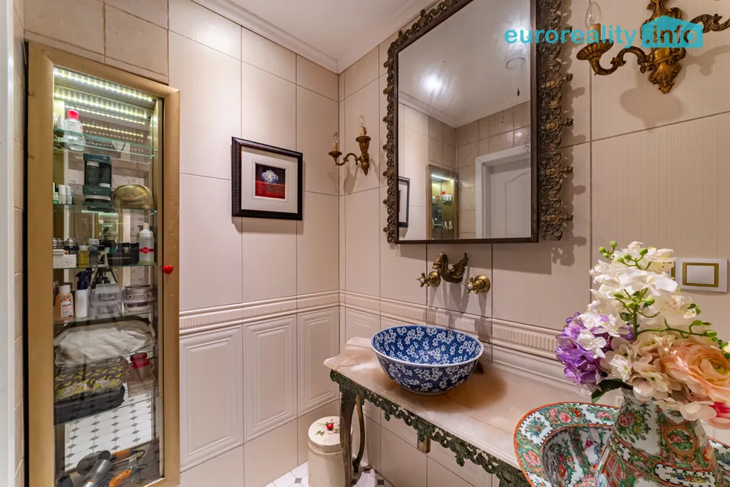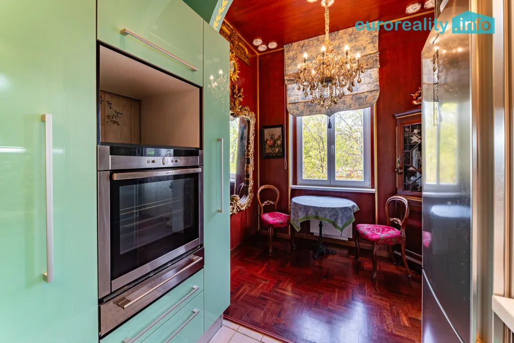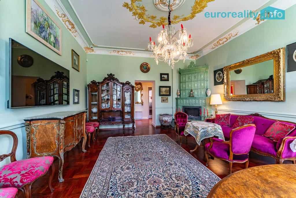Tento elegantní byt představuje harmonické propojení tradičního lázeňského stylu a moderního komfortu. Na první pohled vás zaujme podlaha z afrického teaku, vysoké stropy se štukovou výzdobou, impozantní křišťálový lustr i kachlová kamna z dílny předního českého kachláře, která dotvářejí autentickou atmosféru starých lázní.