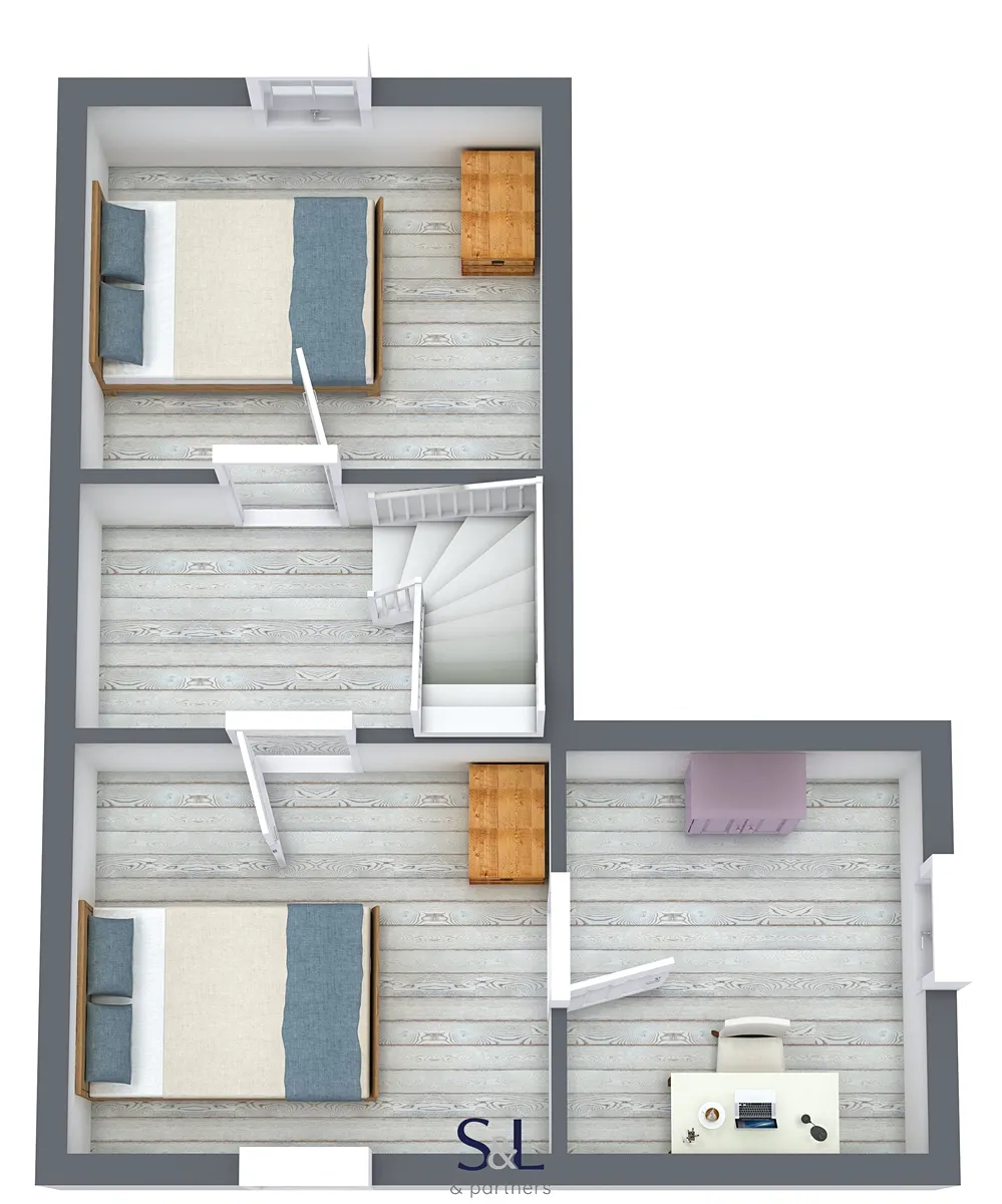 - v podkroví jsou pak dva samostatné pokoje, ideální jako dětské ložnice, hostinské pokoje nebo pracovna.