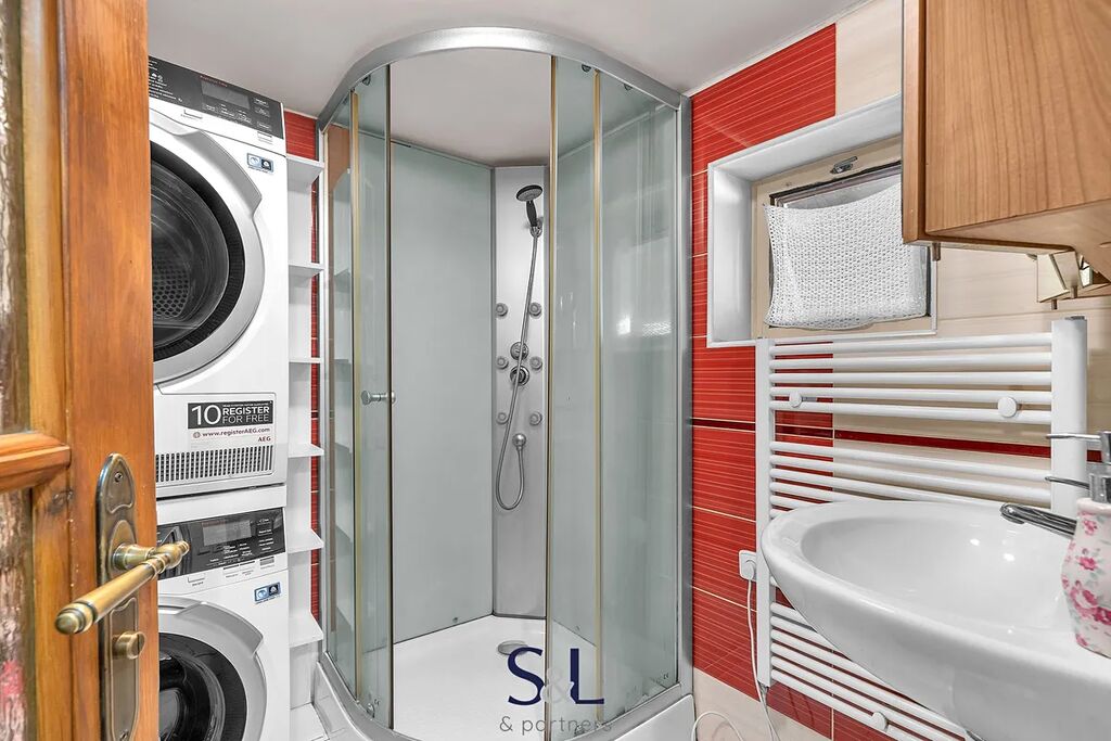 - v přízemí najdete prostorný obývací pokoj s dominantní pecí, která vykouzlí atmosféru domova i v těch nejchladnějších dnech. Navazuje na něj kuchyně a jídelní kout, dále se zde nachází jedna ložnice a dvě koupelny.