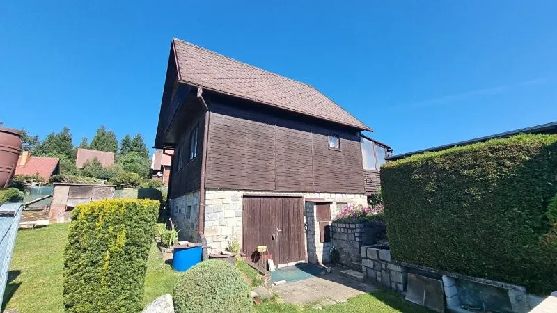 247 Prodej celkově podsklepené dřevěné rekreační chaty postavené na vlastním pozemku v malebném údolí řeky Jihlavy poblíž cyklostezky a řeky v chatové oblasti „ Jeclov “ cca 10 km od Jihlavy. Suterén: garáž ( společenská místnost ), sklep, dílna. Přízemí: veranda, vstupní chodba, WC s umyvadlem, hala, kuchyň, obývací pokoj s krbem a s kamny na tuhá paliva. Podkroví: jedna velká ložnice a prostorná lodžie s krásným výhledem na protější vísku Petrovice. Na oploceném pozemku je postavená zastřešená terasa s posezením a venkovní sprcha. Vlastní pozemek o celkové výměře 456 m2, zastavěná plocha 46 m2, užitná plocha 115 m2. Sítě: el. 220/380V, vlastní vrtaná studna ( hloubka 22 m ), žumpa na vyvážení, topení lokální na TP.