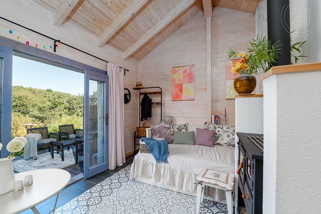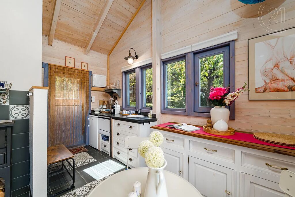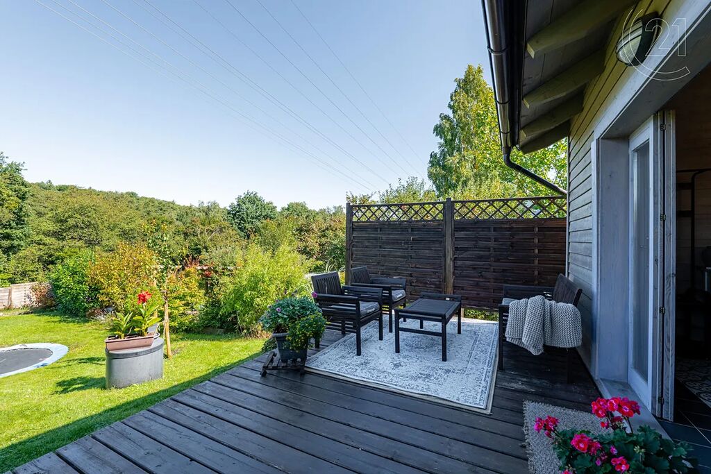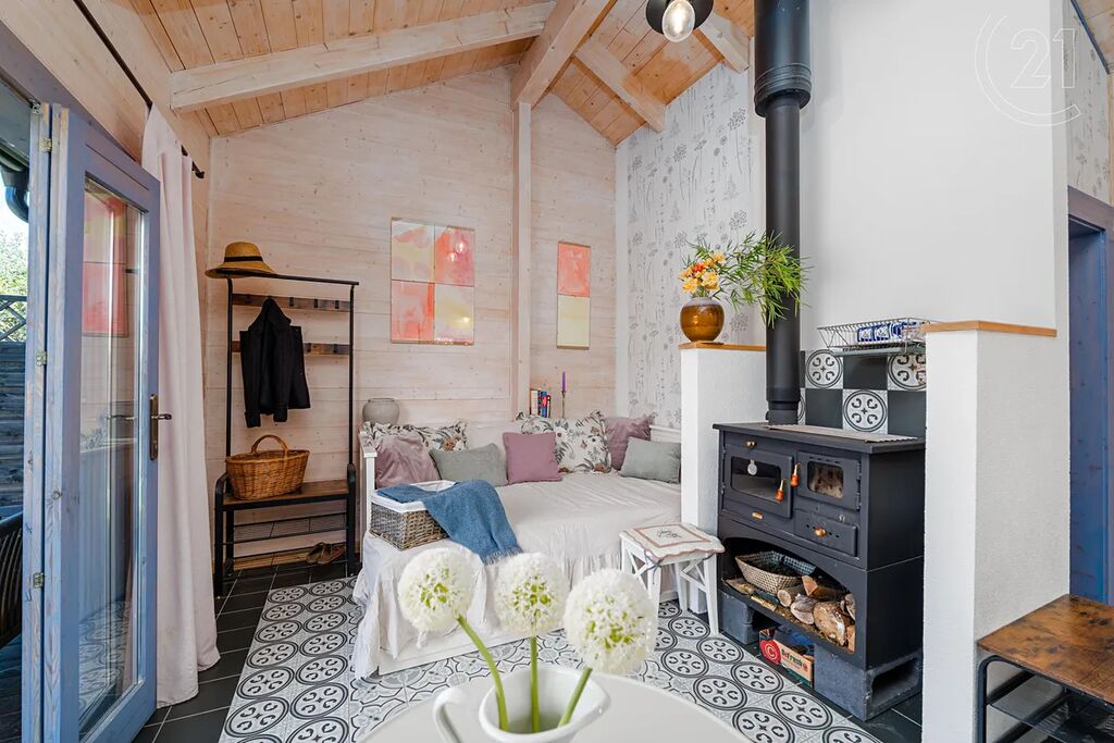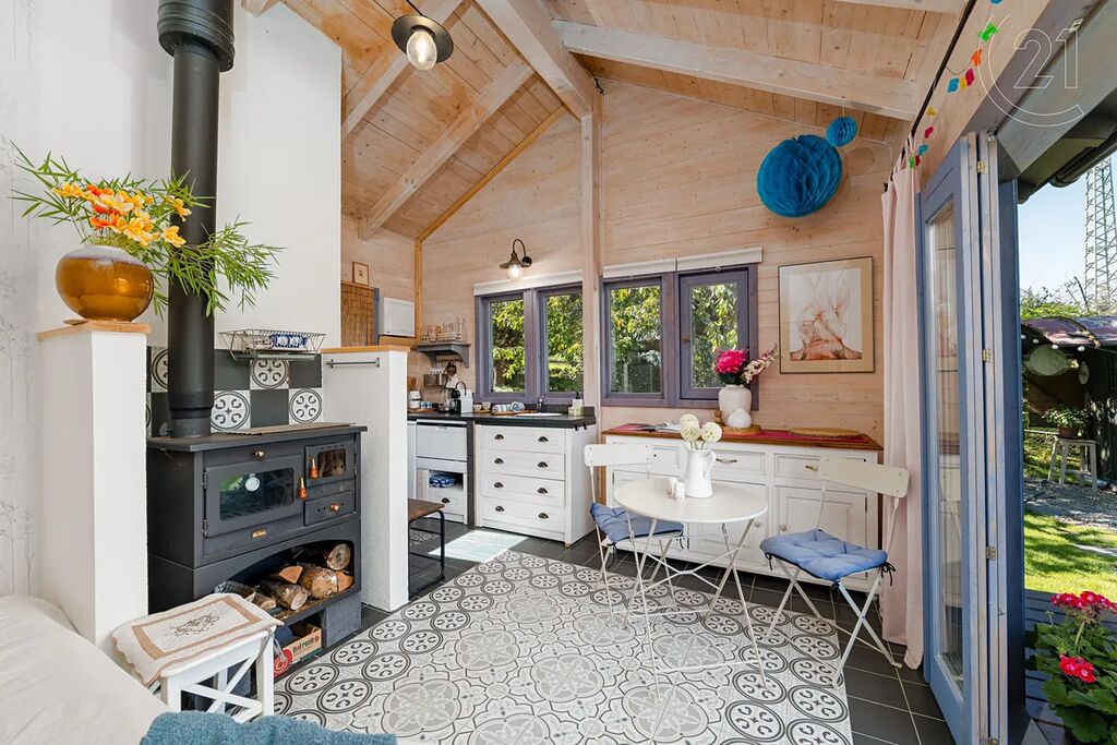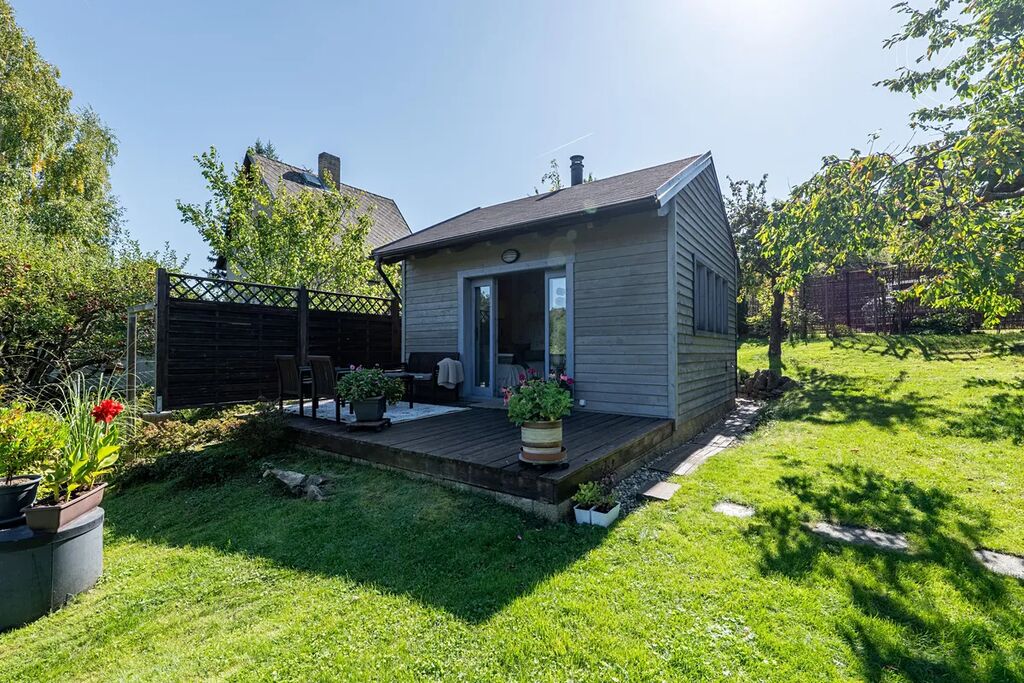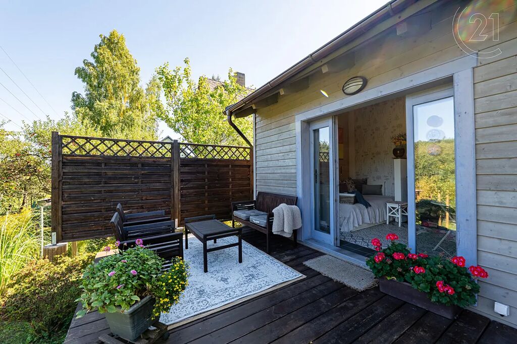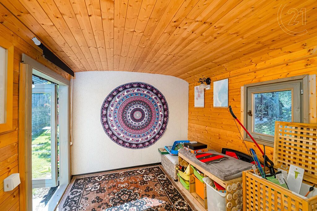 Tento pozemek má vše, a k tomu je zde nová příjemná chata severského typu na pevných betonových základech s funkčním zázemím (elektřina, voda, odpadní vody). Díky odvedené práci současné majitelky je zde možné ihned užívat přednosti této nemovitosti a nejsou zde potřebné žádné další investice. Chata disponuje interiérovým a exteriérovým osvětlením, které umí navodit příjemnou atmosféru tohoto objektu. Okna a vchodové dveře jsou z dřevěných rámu s izolačním dvojsklem. Na základové desce je provedena hydroizolace zároveň jako protiradonová izolace.