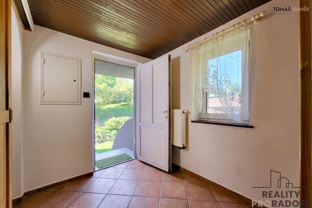 A ta lokalita? Poslední dům ve vesnici. Žádní zvědaví sousedi, žádný hluk z hlavní silnice. Zato výhled do zeleně, klid a stín pod svahem, který oceníte v každém ročním období. Do Boskovic? Na kole za chvíli a autem hned. A přitom večer ticho a tma, jakou ve městě nepoznáte.
