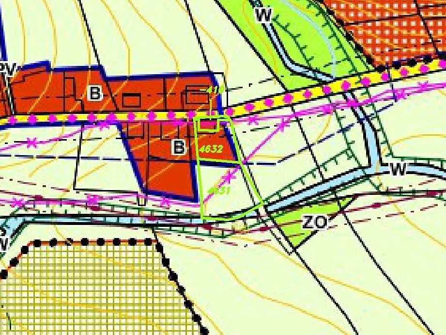 plocha, zahrada a trvalý travní porost. Dle územního plánu se část nachází v ploše pro bydlení