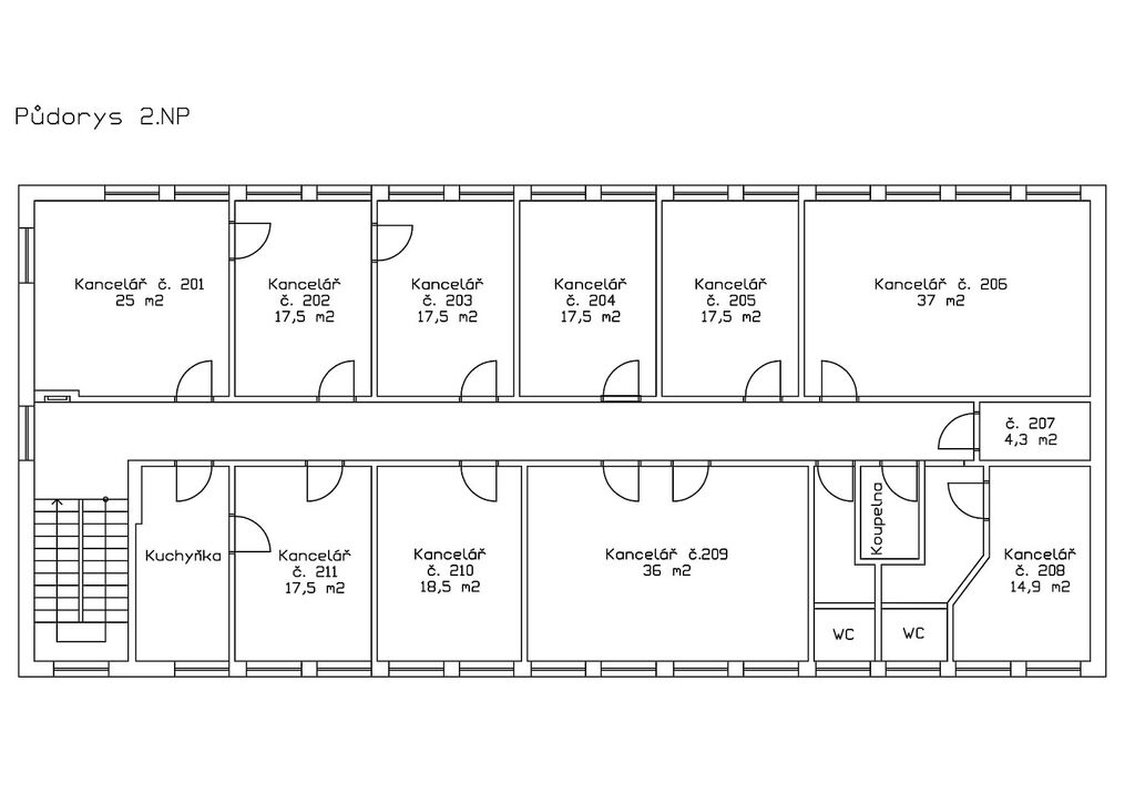 Nabízíme k pronájmu kancelářské prostory o celkové výměře až 220 m², umístěné ve 1. patře administrativní budovy v bývalém areálu BORS v Hustopečích (ul. Bratislavská 799/9). Konkrétní velikosti volných kanceláří jsou uvedeny na přiložené fotografii.