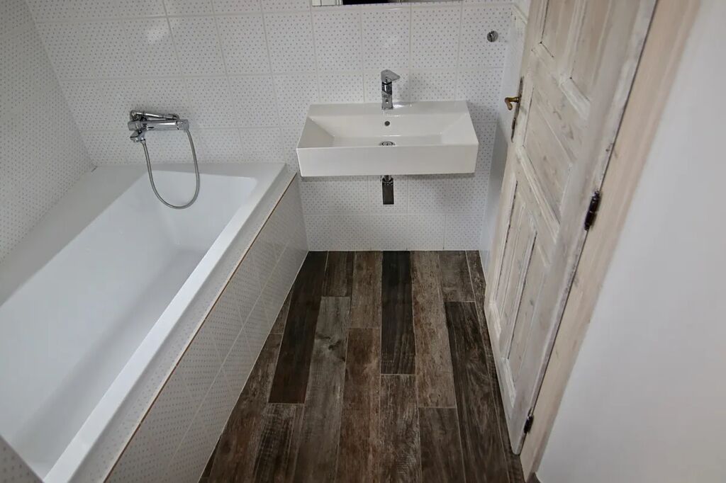 Jednotka prošla kompletní rekonstrukcí ( rozvody elektřiny, vody a odpadu, omítky, podlahy, obklady, dveře a okna ).