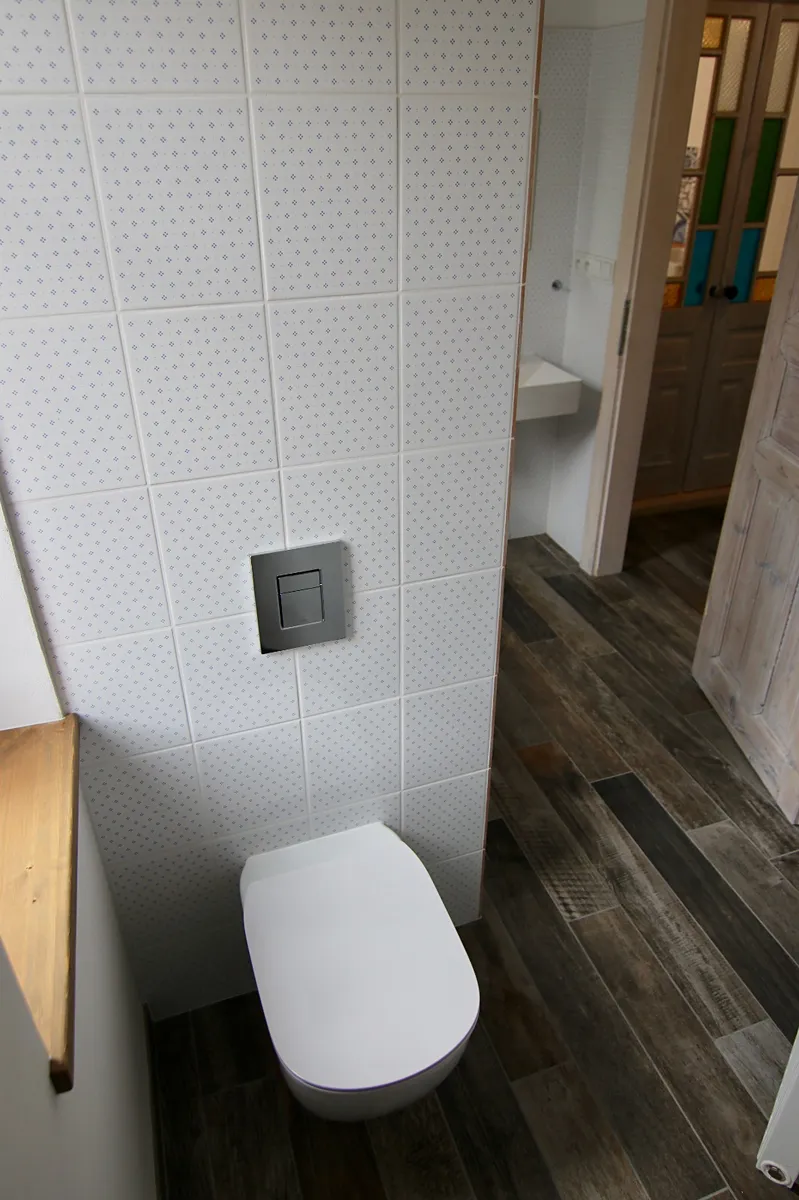 Byt sestává z obývacího pokoje s kuchyňskou linkou, ložnicí, koupelnou s vanou a oddělenou toaletou. Povrchy místností tvoří dřevěné podlahy ( obývací pokoj+kk, ložnice ) a keramická dlažba ( koupelna + WC ).
