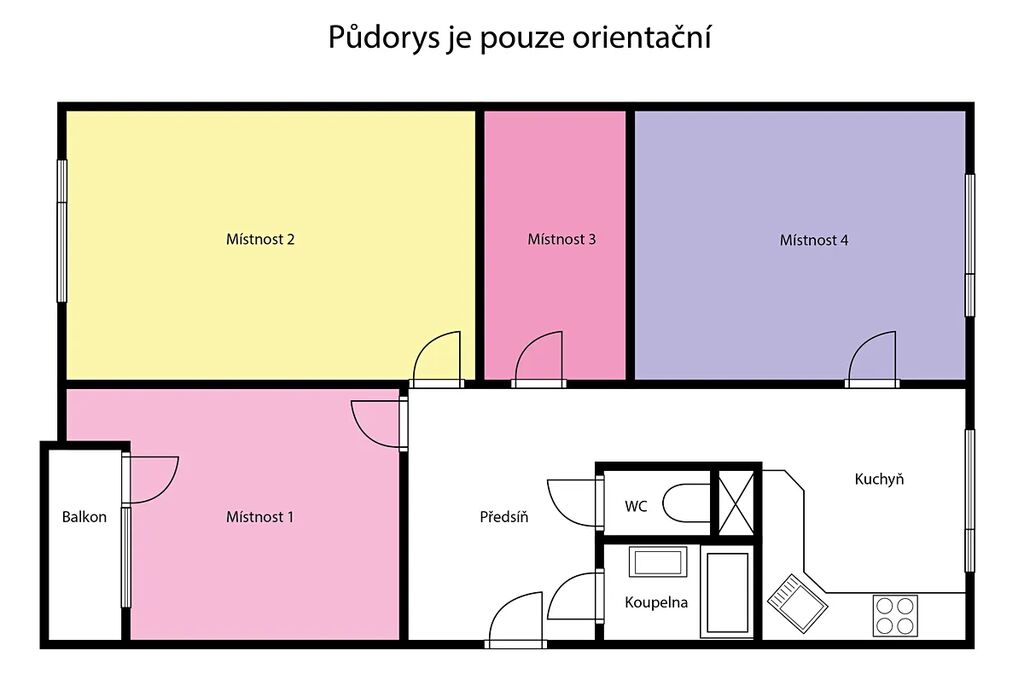 4 samostatné pokoje + kuchyň