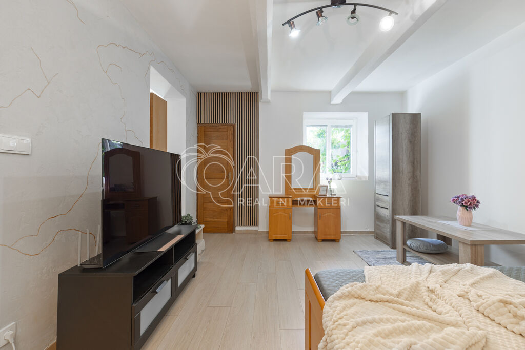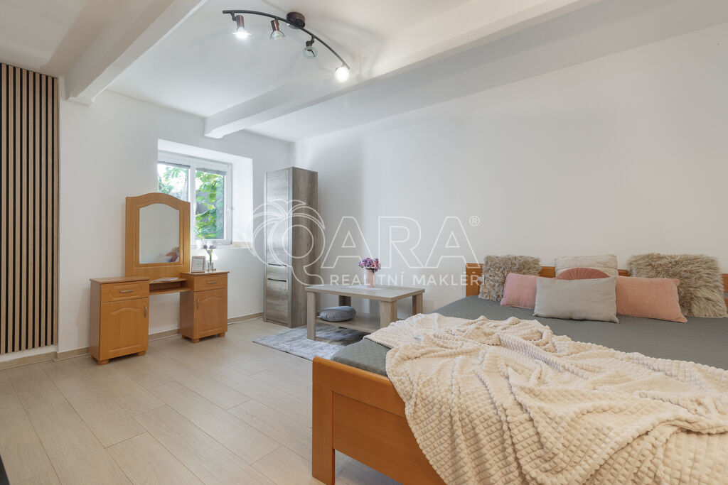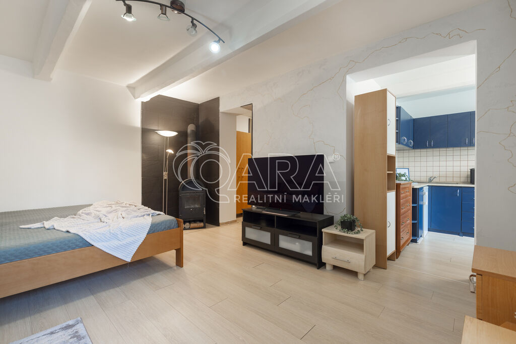 Nabízíme k prodeji byt 1+1 ve suterénu cihlového domu na ulici Hřbitovní v Novém Jičíně. Byt prošel v minulosti rekonstrukci, která zahrnovala rozvody elektřiny, vody v plastu a plastová okna. Prakticky řešená rohová kuchyňská linka je vybavena vestavěnou indukční varnou deskou a elektrickou troubou. Prostor pro lednici je k dispozici, ale doporučuji zvážit instalaci myčky pro větší pohodlí. Zděná koupelna se sprchovým koutem a WC nabízí dostatek prostoru pro každodenní hygienu. Technická místnost pojme bojler, pračku i sušičku díky připraveným rozvodům. Vytápění máte plně pod kontrolou - kombinace elektrických podlahových fólií s útulnými krbovými kamny v obývacím pokoji vytváří nejen příjemnou atmosféru, ale také pomáhá optimalizovat náklady na energie. Kvalitní laminátová podlaha v obytných prostorech a praktická dlažba v koupelně a technické místnosti dotváří celkový komfort bydlení. Všechna okna směřují do zahrady, což zajišťuje klidné bydlení. K bytu náleží prostorná sklepní místnost - ideální pro uskladnění dřeva na topení i sportovních potřeb. Bytový dům prošel částečnou revitalizací v roce 2012. Měsíční náklady na společné části činí 2 563 Kč (včetně 1 693 Kč do fondu oprav), k tomu připočtěte pouze spotřebu elektřiny. Parkování vyřešíte snadno přímo u domu.
