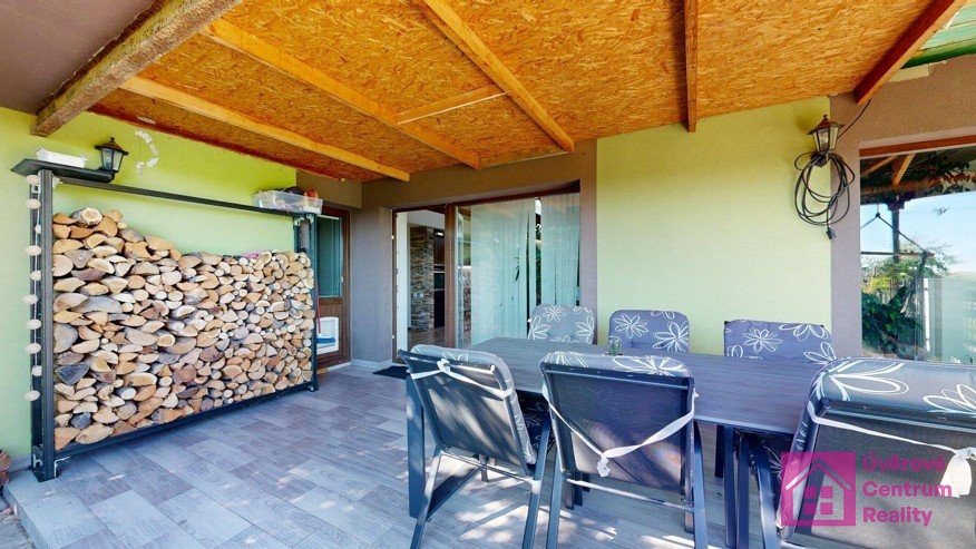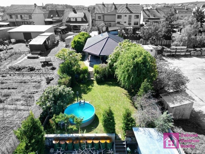 Za domem se nachází velká zahrada, která je rozdělena na dvě části. První je relaxační s venkovním bazénem a druhá část zahrady slouží pro pěstování ovoce a zeleniny. V zahradě jsou vzrostlé ovocné stromy (1x třešeň, 3x broskev, 2x nektarinka a 1x hruška). Stáří všech stromů je 10 let.