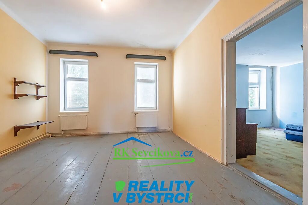 1. patro: bytová jednotka 3+1, koupelna, WC, CP 80 m2. Tento byt byl částečně obýván, plastová okna.