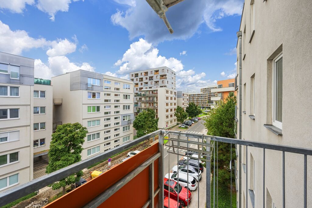 Z obývacího pokoje je přímý vstup na balkon (3,29 m²), který je orientovaný na jih a nabízí příjemné posezení u kávy nebo možnost pěstování bylinek.