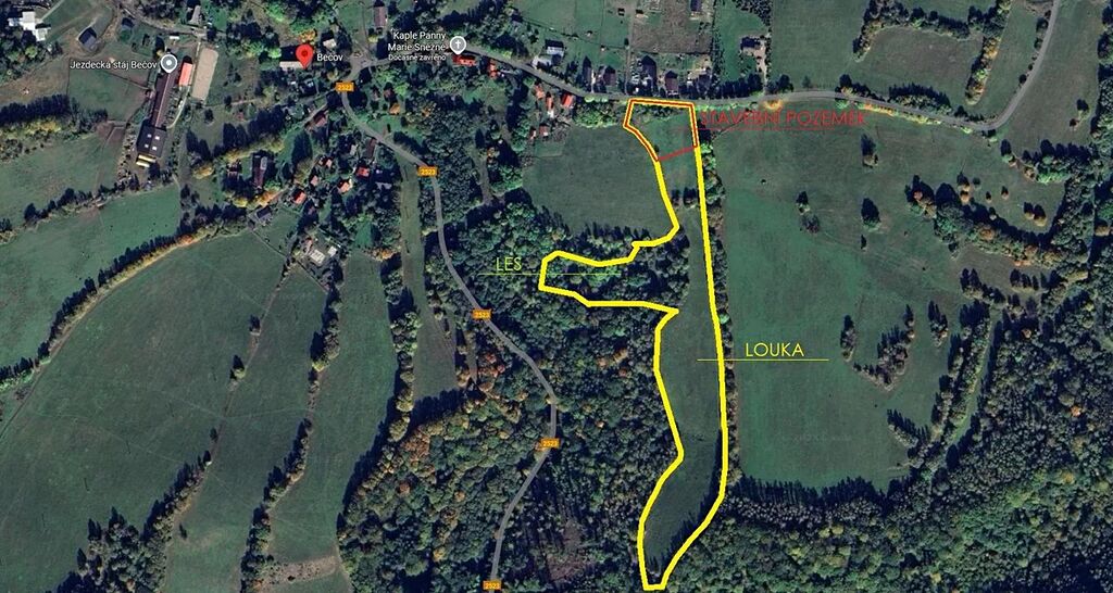 Prodej stavebních pozemků a souvisejících luk a lesa, Bečov v Krušných horách.