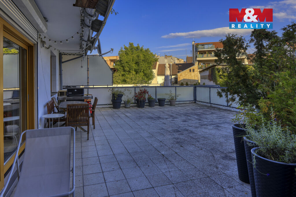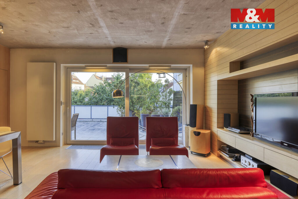 Nabízíme k prodeji prostorný světlý byt 4+kk o užitné ploše 106 m², který se nachází ve velmi žádané lokalitě v Plzni - Roudná. Byt je situován v 1. patře třípodlažního cihlového domu a nabízí klidné bydlení v příjemné části obce s blízkostí přírody. Dispozice bytu zahrnuje obývací pokoj s kuchyňským koutem (zde je designový krb, co vyhřeje celý byt) a vstupem na nadstandardní terasu (71 m²), dále pak dva dětské pokoje neprůchozí, ložnici, prostornou koupelnu (podlahové vytápění, atypický zděný sprchový kout, vana), WC a vstupní chodbu. K bytu je možnost dokoupit garáž či (a) parkovací stání vnitřní. Nemovitost byla doplněna o nákladné vybavení a příslušenství (izolační rolety a markýzy na dálkové ovládání, zabudované kabely na 7 kanálové kino, odhlučněná stěna mezi obývacím pokojem, betonová stěrka na stropě, moderní kuchyně s bezúchytovým systémem. Ideální pro rodiny hledající klidné bydlení s dobrou dostupností do centra města. Volejte o prohlídku či více info.