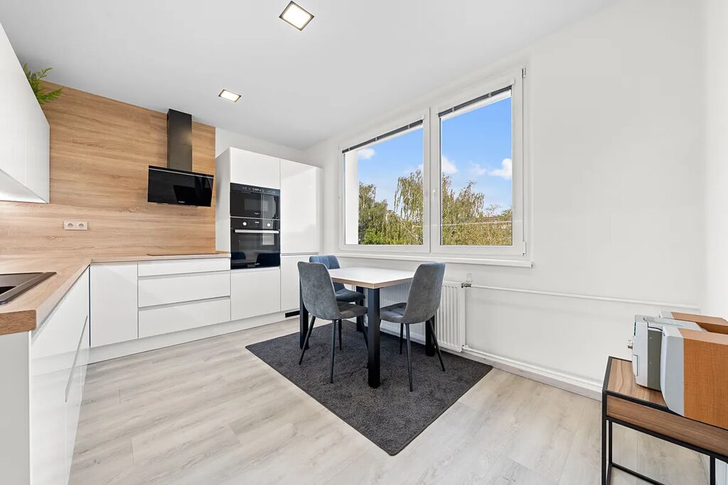 Byt prošel kompletní rekonstrukcí - nové rozvody vody a elektřiny, omítky, radiátory, kvalitní podlahy Gerflor, kuchyňská linka na míru se spotřebiči Whirlpool, vyzděné jádro, moderní koupelna se sprchovým koutem a samostatná toaleta. Dále vestavěné skříně v chodbě, stropní podhledy s bodovým osvětlením a praktické úložné prostory, k dispozici je komora v bytě, komora na patře a sklep v suterénu domu. Byt je částečně zařízený a připravený k okamžitému nastěhování.
