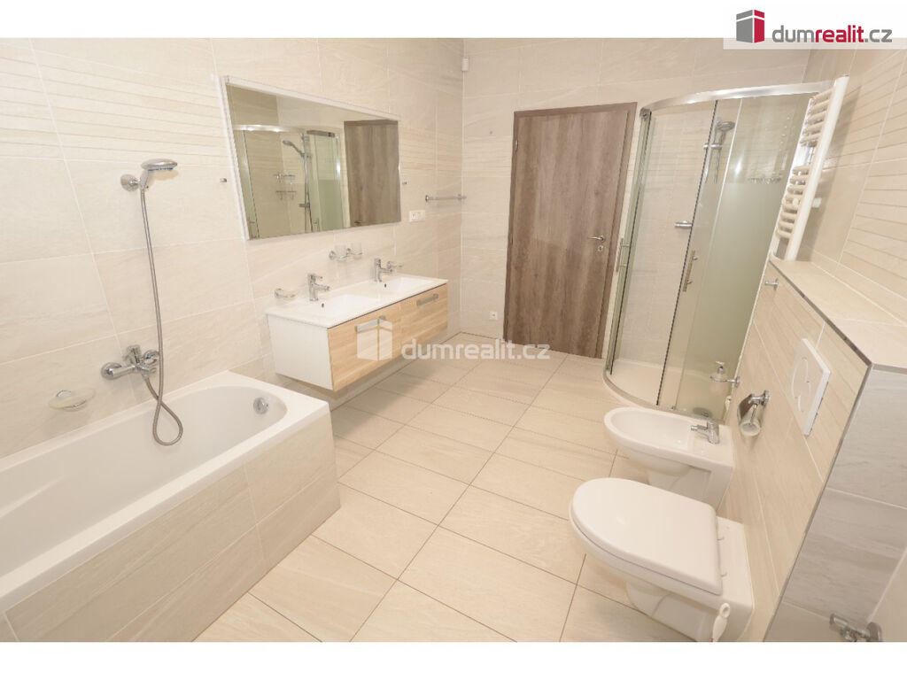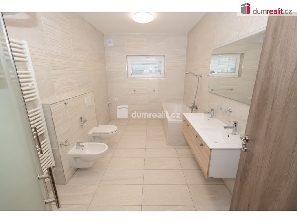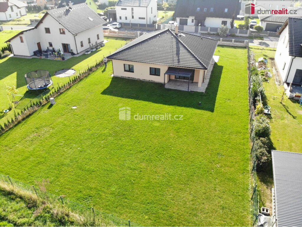 Dumrealit.cz Vám zprostředkuje exkluzivně pronájem nízkoenergetické, bezbariérové novostavby domu (2018 – top stav) s dispozicí 4+kk, 152,40 m² + 8 m² krytá terasa, v obci Sibřina, nedaleko městyse Říčany, 3 km od Prahy. Dům je volný od listipadu, prohlídky jsou již monžné, aktuálně se maluje a připravuje pro nového nájemce. Plocha pozemku je 1143 m², zastavěná plocha je 200 m², zahrada má 943 m². Dispozici domu 4+kk (152,40 m²) s garáží (20 m²) tvoří prostorný obývací pokoj (40,9 m²) s možností instalace krbových kamen, prakticky spojený s kuchyňským koutem, který je vybavený luxusní zakázkovou kuchyňskou linkou se spotřebiči (myčka 60, indukční deska, digestoř a vestavěná el. trouba a vestavěná mikrovlnka). Kuchyňský kout má praktickou komoru/špajz (1,93 m²). Z obývacího pokoje je vstup přes francouzské dveře na zastřešenou terasu (8 m²) a na zahradu (943 m²). Další místnost domu 4+kk (152,4 m²) tvoří: ložnice (15,76 m²), dětský pokoj (14,48 m²) a pokoj (13,88 m²), centrální koupelna (9,84 m²) s vanou, umyvadlem, toaletou, bidetem, sprchovým koutem a oknem. Dále jsou v domě: komora / technická místnost (4,43 m²), toaleta (2,40 m²), velká interiérová chodba (14,12 m²), zádveří (6,46 m²), samostatný sklad (8,20 m²), který má přístup ze zahrady a je zde umístěn plynový kotel, a velká garáž pro 1 auto (20 m²) se vstupem do domu. V celém domě je podlahové/teplovodní vytápění pomocí plynového kotle a klimatizace. Konstrukce domu je z materiálu Ytong. Na podlaze ve 2/3 domu je praktická dlažba, ostatní pak plovoucí podlahy. Vjezd do garáže je ovládán elektronicky. Tento dům je volný od listopadu, je v osobním vlastnictví, elektroměr a plynoměr se hlásí na nájemce. Zvíře se řeší individuálně. Na zahradě je 4 m3 nádoba na dešťovou vodu – zalévání. Internet pomocí místní WIFI, dům má vlastní alarm. Majitel garantuje stabilní dlouhodobý pronájem, aktuální nájemce se stěhuje na vlastní žádost po 3 letech. Dům pronajímáme od roku 2018. Velmi doporučuji všem, kteří hledají bungalov s velkou zahradou a garáží. Ev. číslo: 652493.