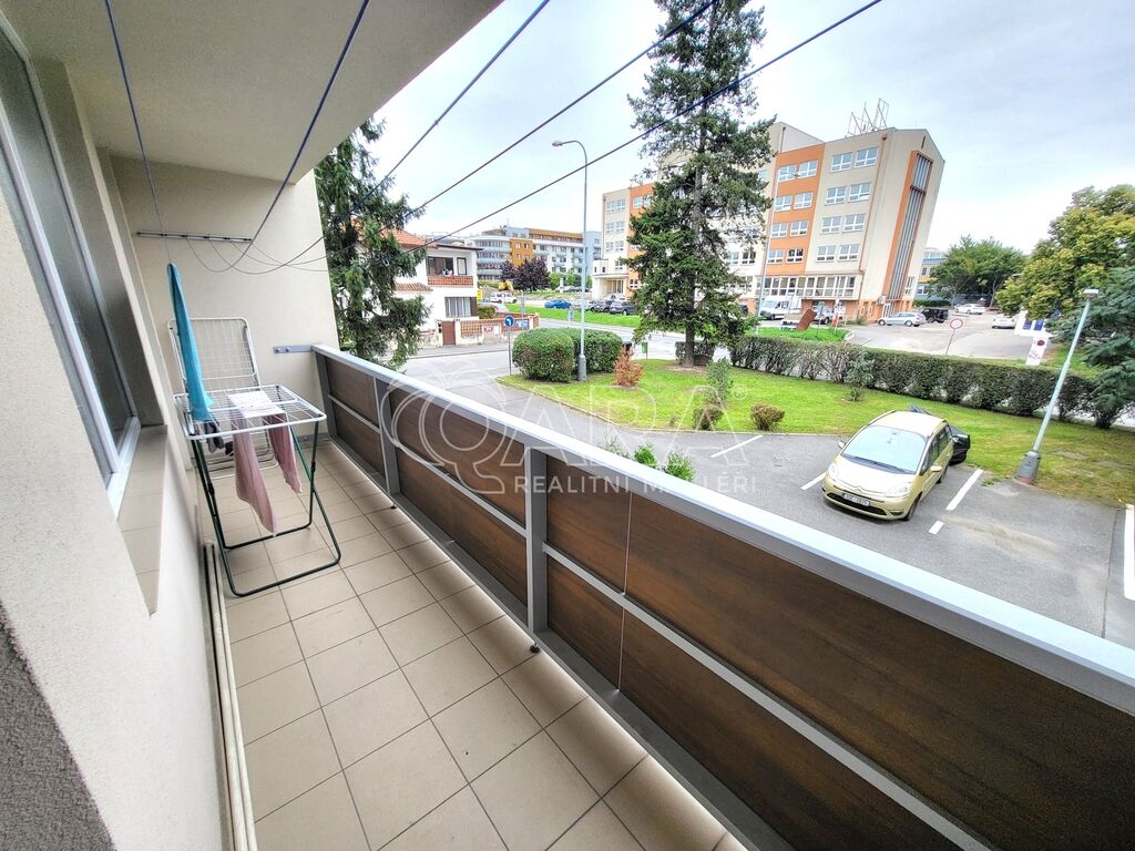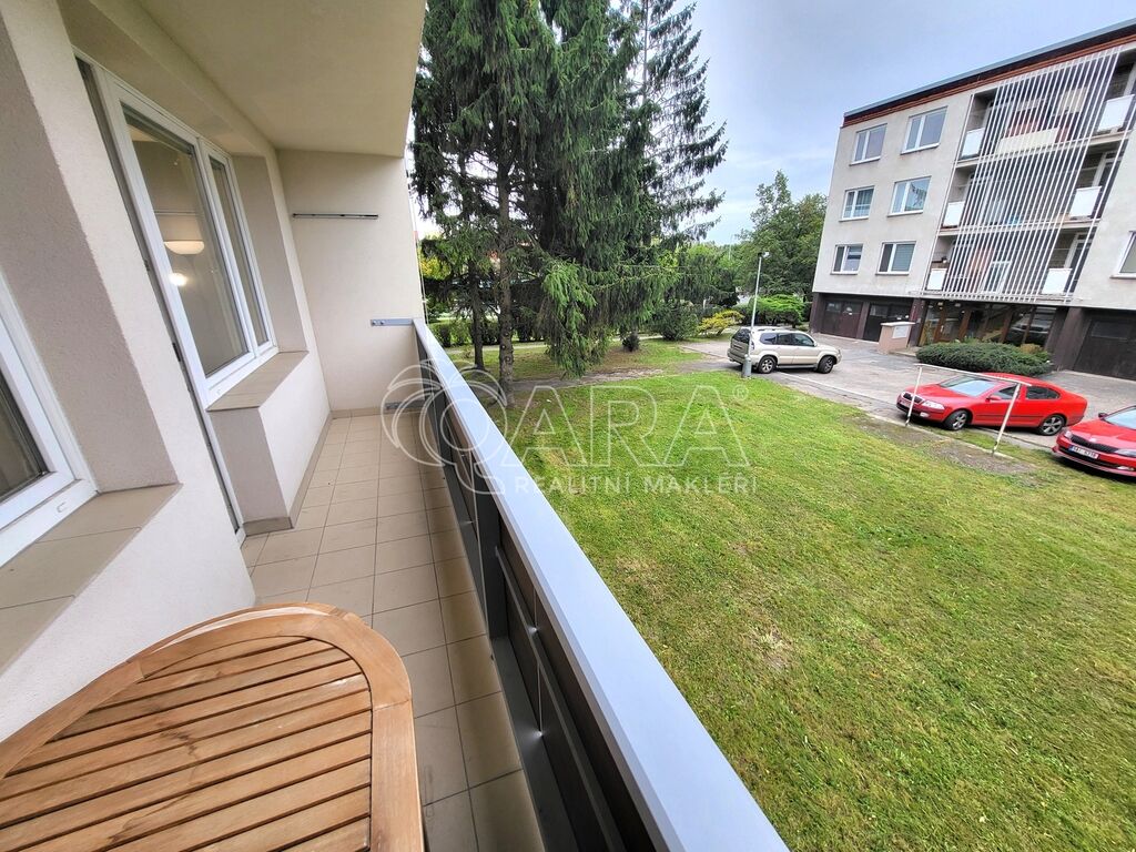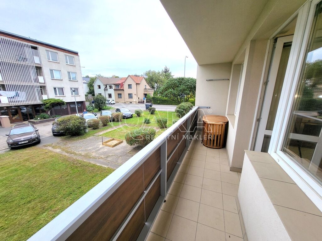 Z obývacího pokoje je vstup na lodžii. K dispozici je navíc ještě jedna společná lodžie pro tento a sousední byt na patře. K bytu náleží také sklepní kóje. Parkování je možné přímo před domem na vyhrazeném parkovišti pro rezidenty.