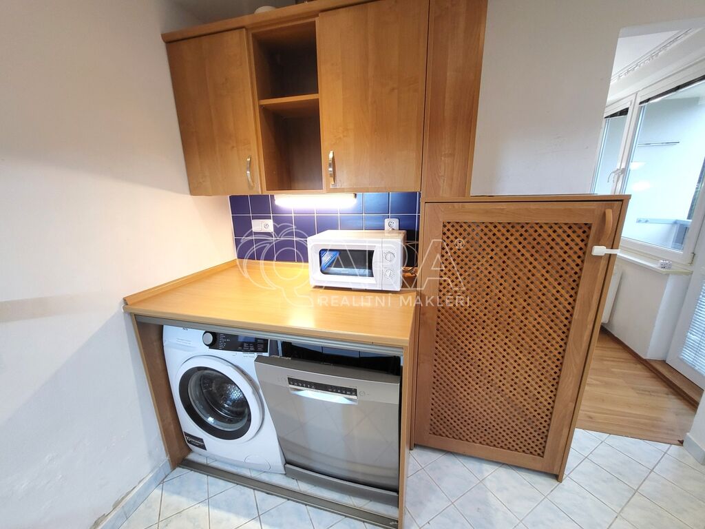 Kuchyň: pračka, myčka, mikrovlnná trouba, elektrická trouba, varná deska a vestavěná lednice s mrazákem.